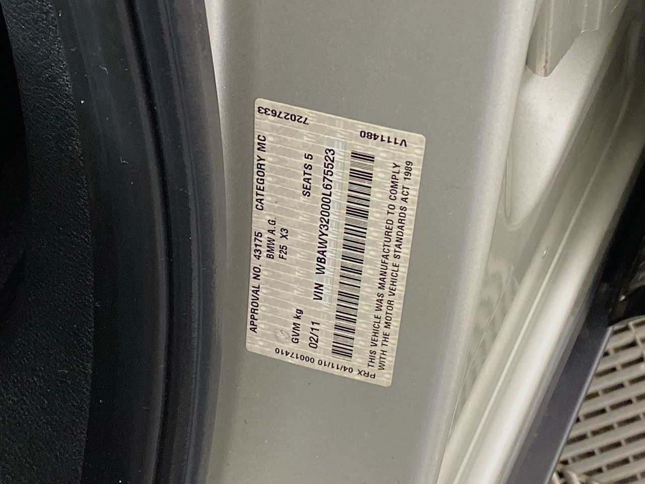 Part of Sale 2011 BMW X3 xDrive 20d F25 T/Diesel Auto