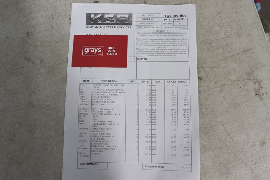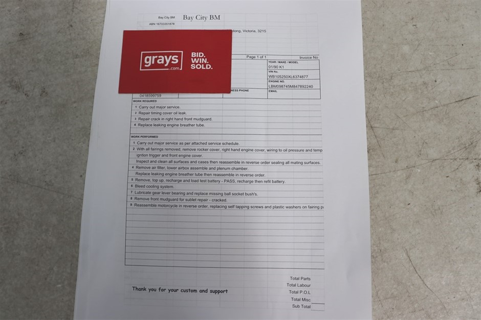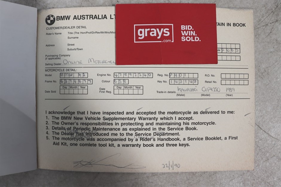 | Part of Sale | 1990 BMW K1 Solo seater Road, 63, 462 km km indicated | ||||