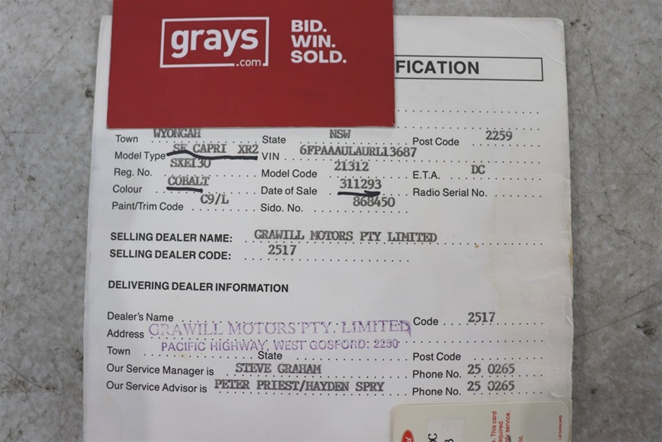 | Part of Sale | 1993 Ford Capri XR2 SE Auto | ||||