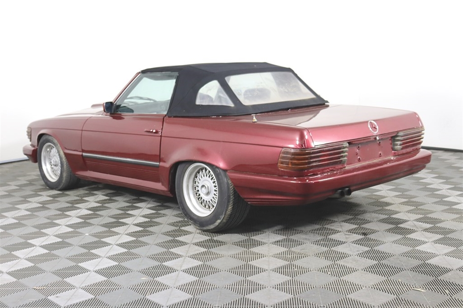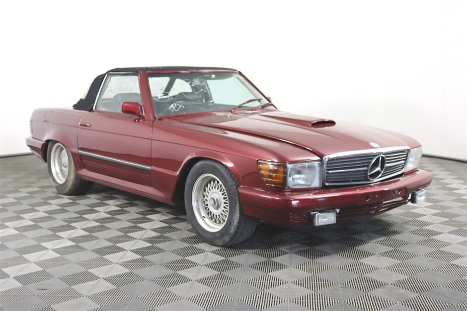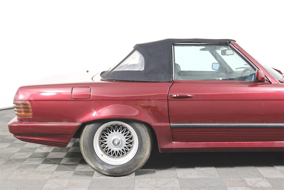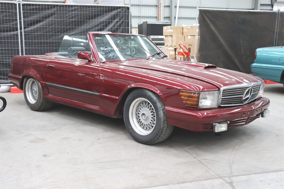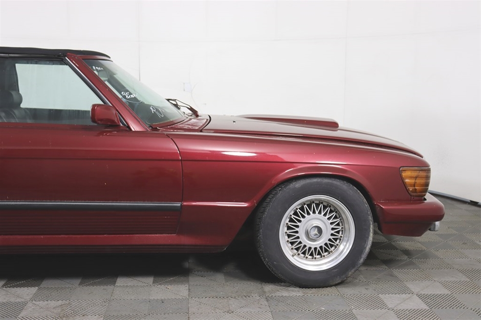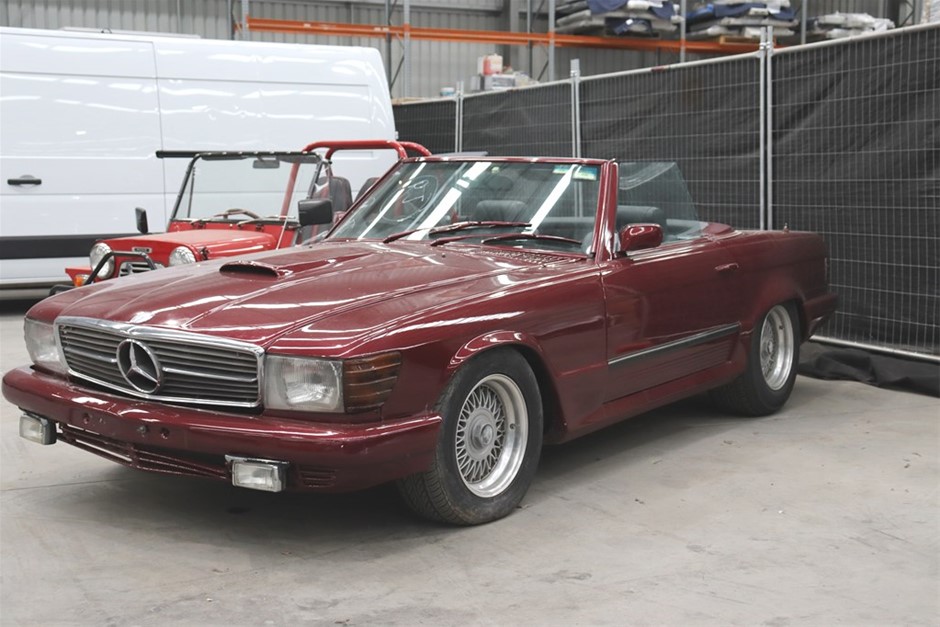 This Mercedes Benz 350SL has been modified inside and out, and has a QLD mod plate from 2007 for the conversion to a Chevrolet V8 and Automatic gearbox. With a B&M shifter, Holley Carb, custom interior, custom maroon paintwork, and custom bonnet scoop. Something a little different!