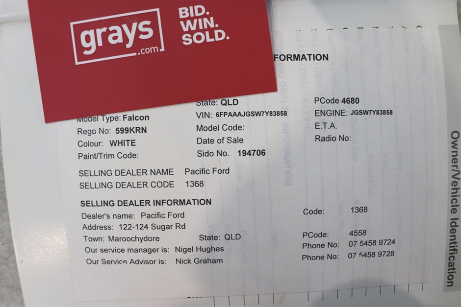 | Part of Sale | 2007 FPV F6 TYPHOON BF II Automatic Sedan | ||||