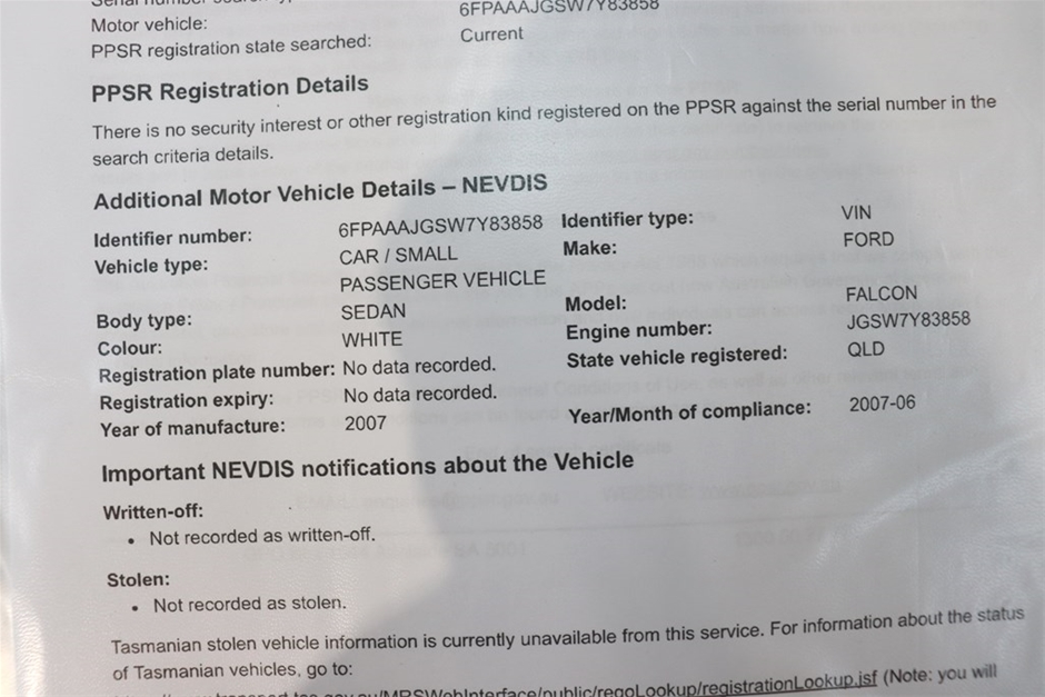Have we checked if there is a Written Off Vehicle Record or finance owing on the vehicle?