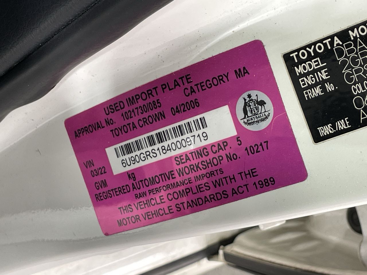 • VIN: 6U90GRS1840009719