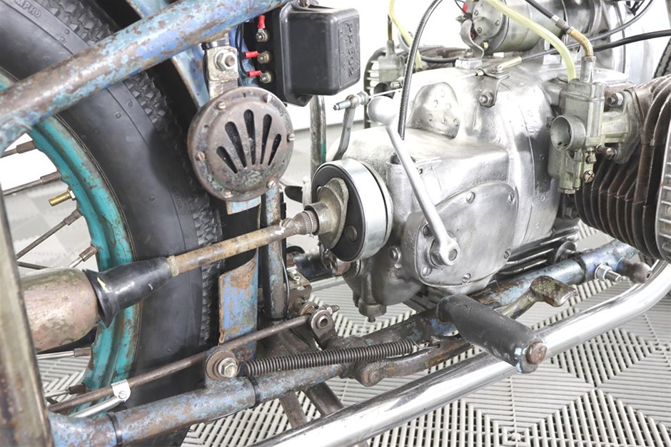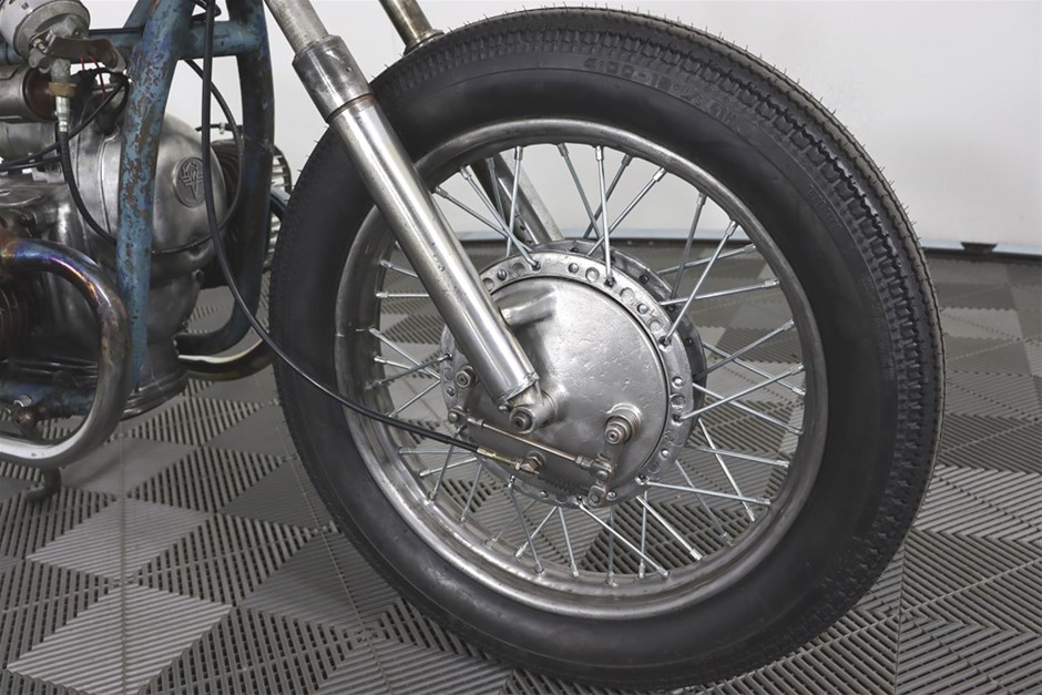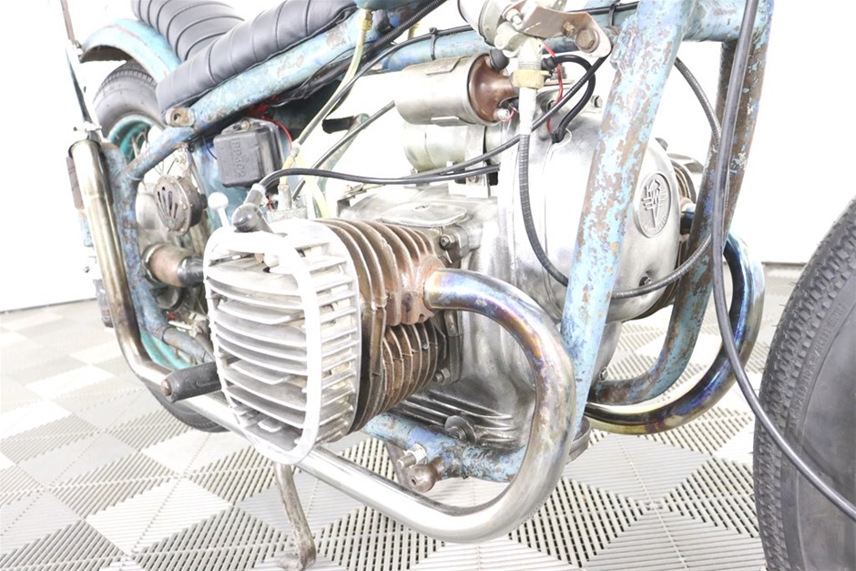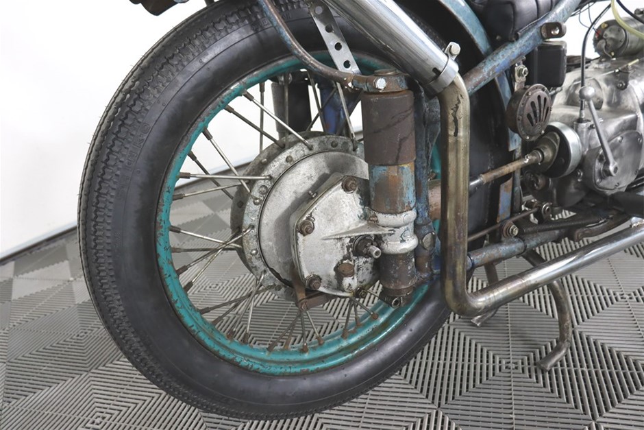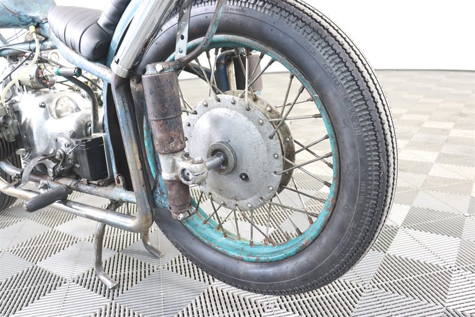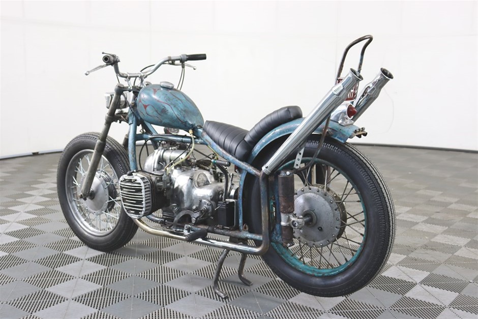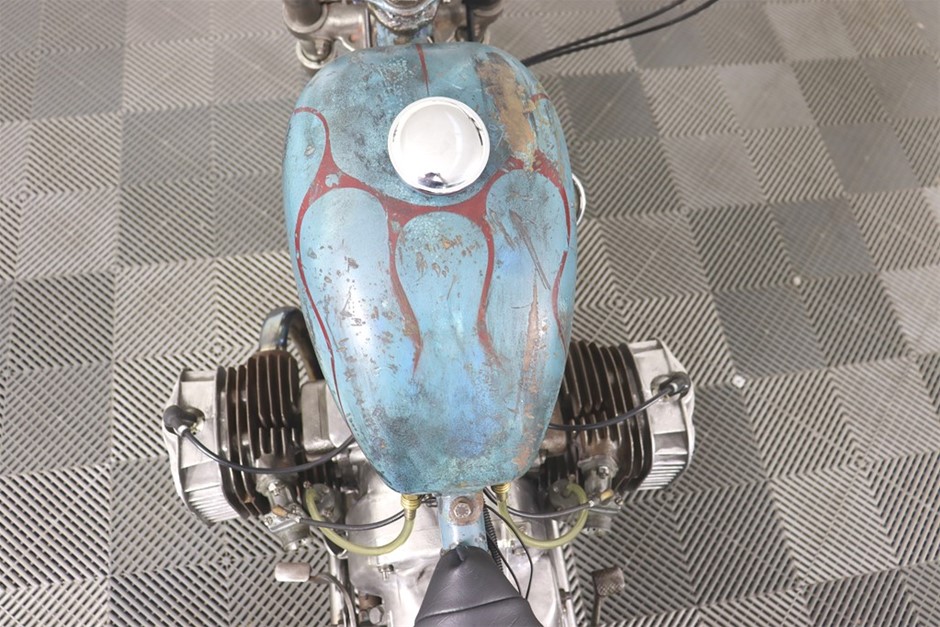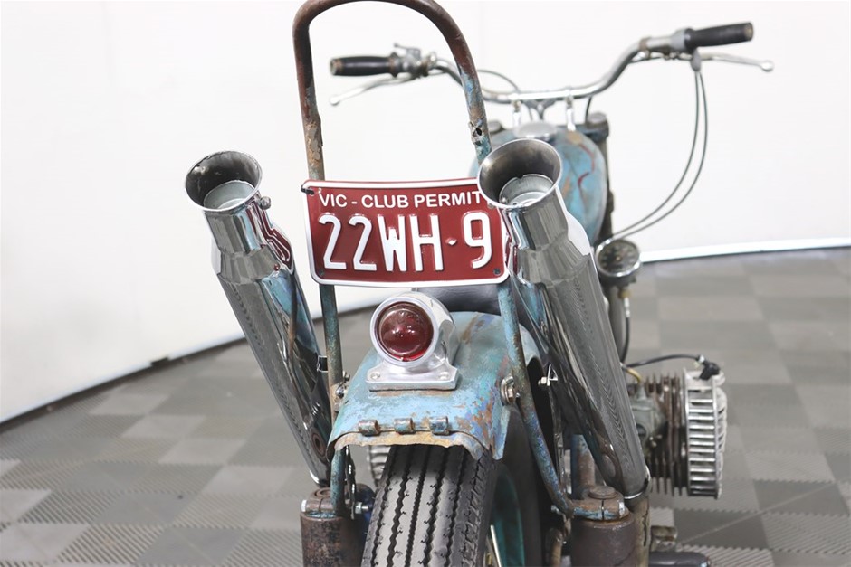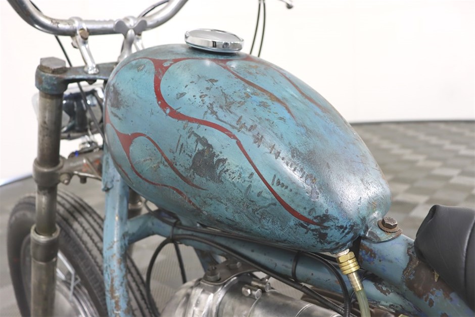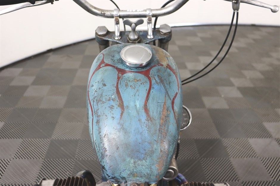 750cc Flathead Boxer engine in original patina frame and guards. Features a brand new fuel tank and gas cap painted by Mitch `Big Love` Bailey. New Shinko E270 Tyres, New Throttle, Clutch and Brake Cables, New Prism Supply Dual Brass 1/4 Petcocks with Clear Fuel lines, New Points, Leads and Spark plugs, Front wheel respoked and trued, New Brake Pads, Head stem bearings, New Headlight and Stop light, New Rear Brake Switch, Custom stainless exhaust with Cocktail Mufflers.