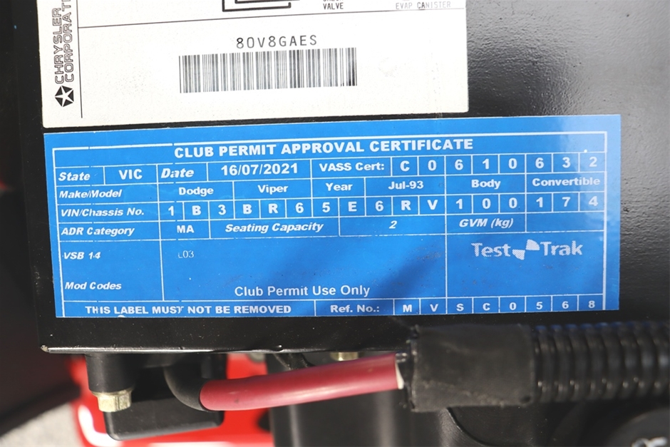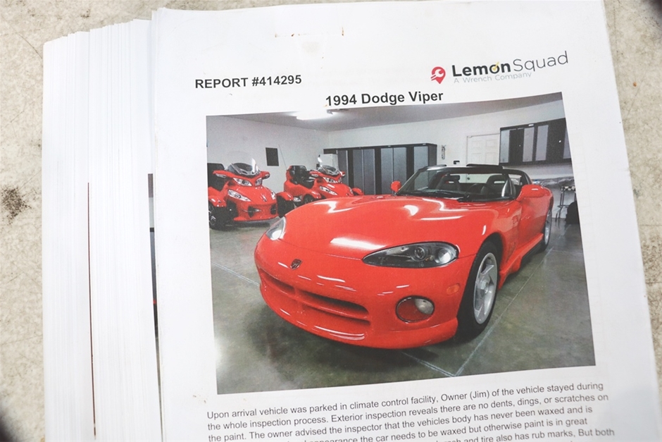 | Part of Sale | 1993 Dodge Viper RT/10 6,800 miles Manual Roadster (Import) | ||||