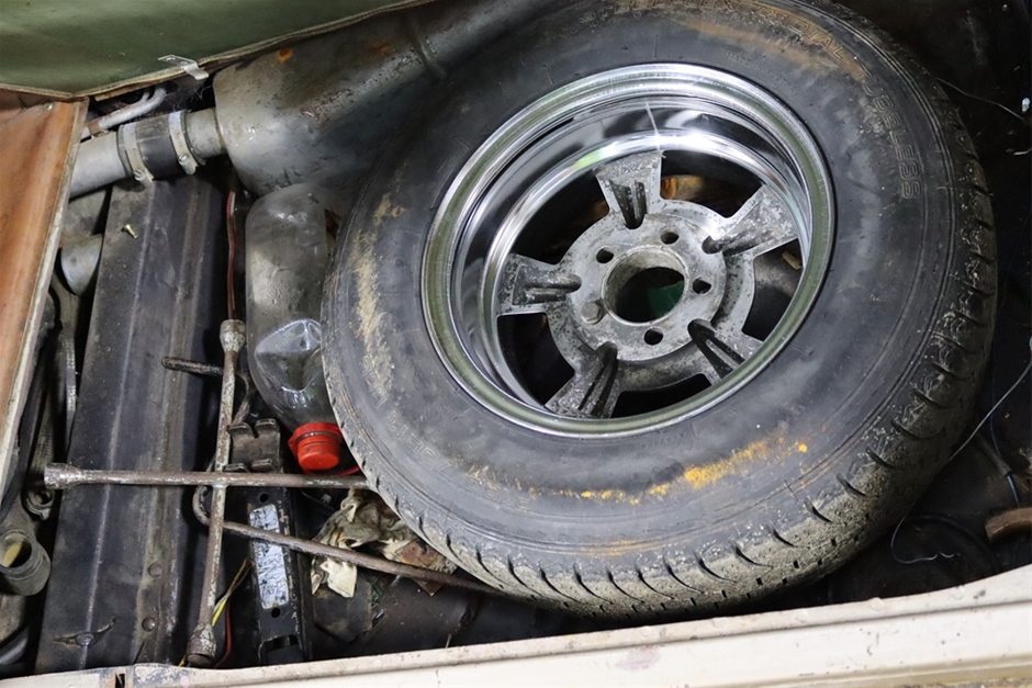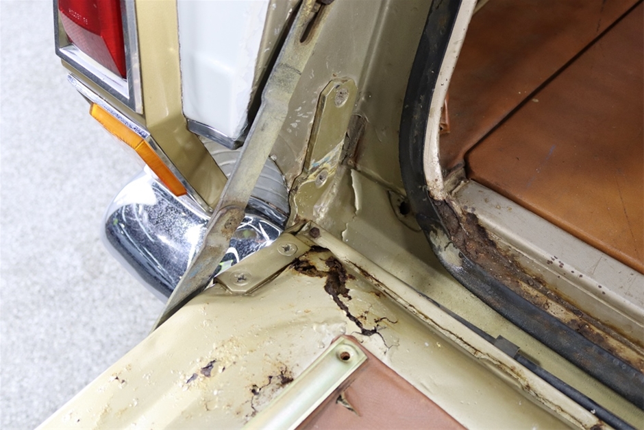 It has loads of charisma, with chrome bumpers, mag wheels, sun visor, roof rack, tow bar, and venetian blinds too!