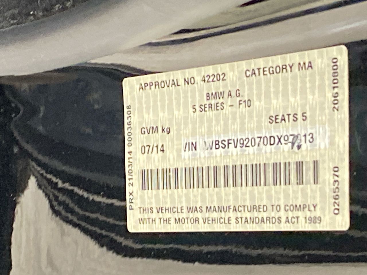 (SN:WBSFV92070DX97913) (129033-69)