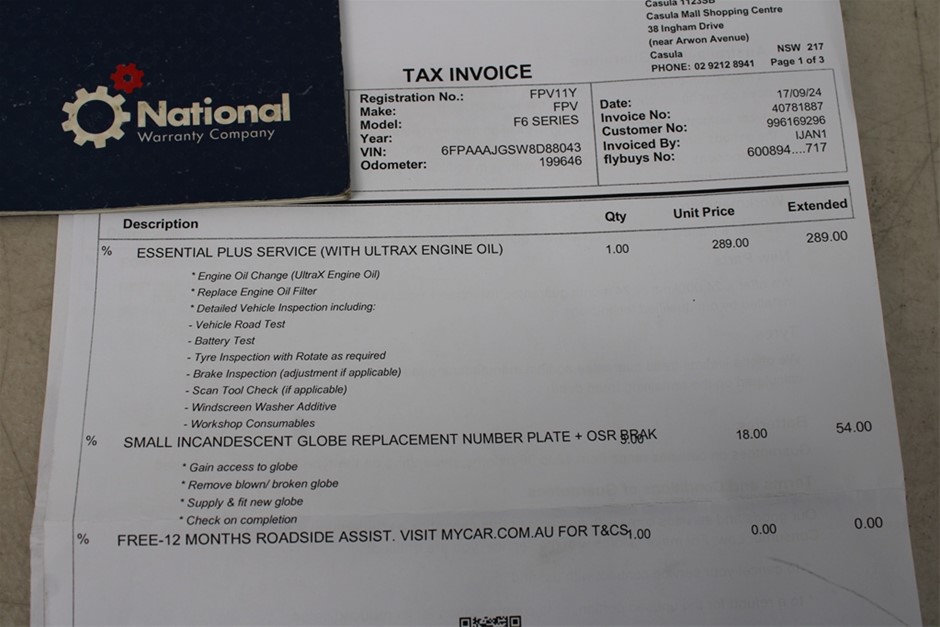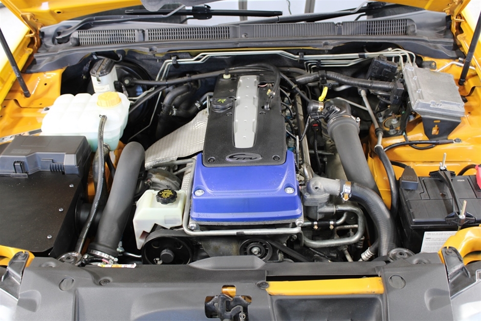 A striking car, factory finished in Octane Orange, this is FPV F6 Build 106. Wearing genuine FPV Twists, the air intake has been upgraded (original in the boot) to a boxed off style, battery relocated, and fitted with G6 style taillights. The diff bushes, engine mounts, transmission mount, front brake pads, front brake rotors, and new tyres were all completed for the roadworthy, which was issued on 3rd October. One for the FPV enthusiast, or turbo Falcon fan.