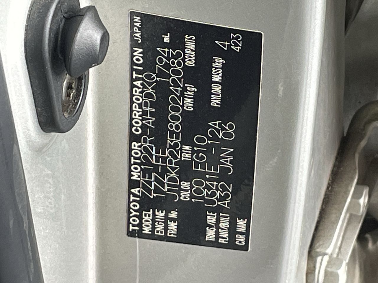 (SN:JTDKR23E800242083) (118006-2)