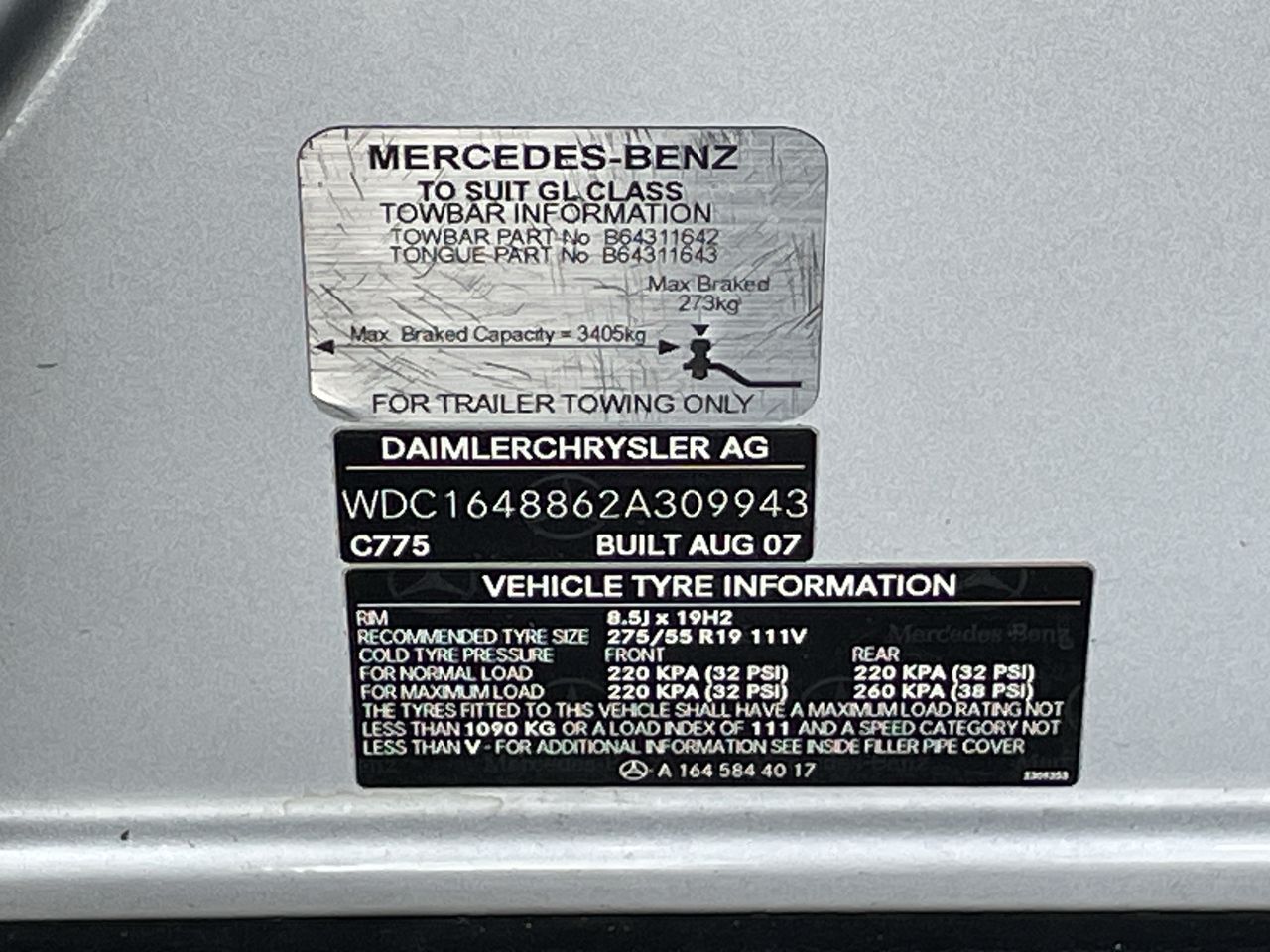 Part of Sale 2007 Mercedes Benz GL500 X164 Automatic 7 Seats Wagon