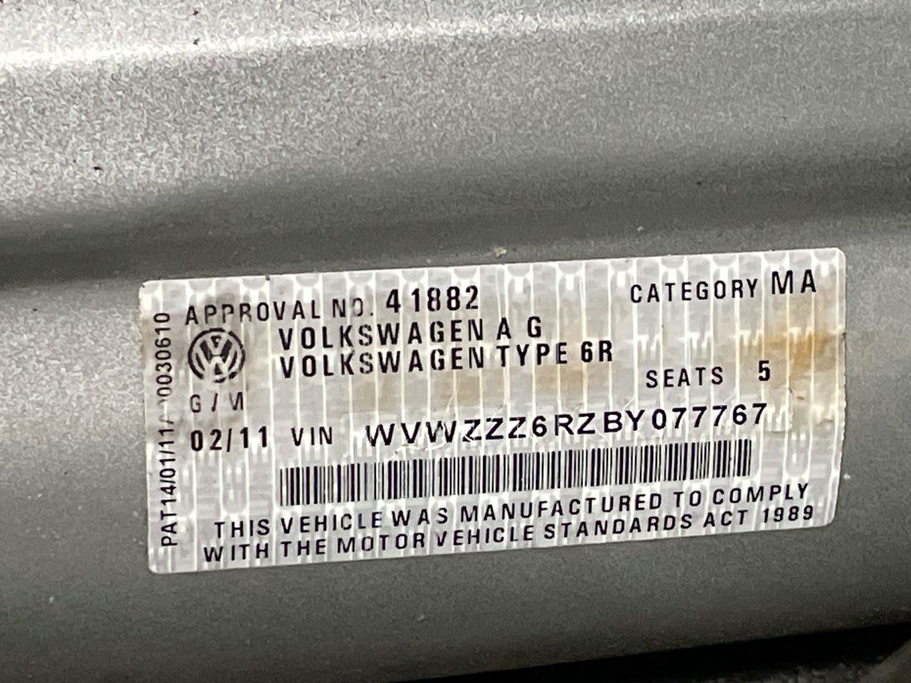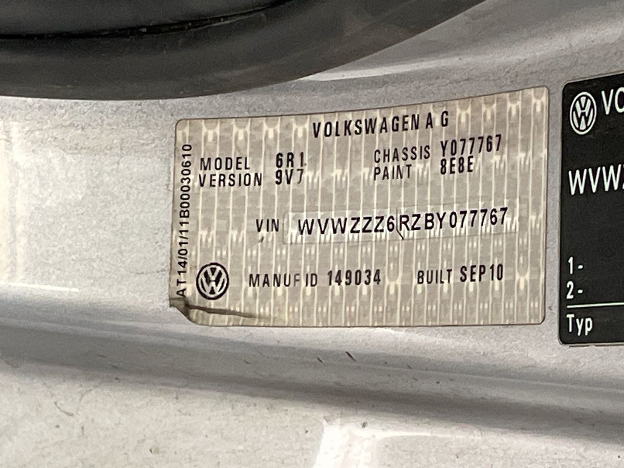 (SN:WVWZZZ6RZBY077767) (121120-1)