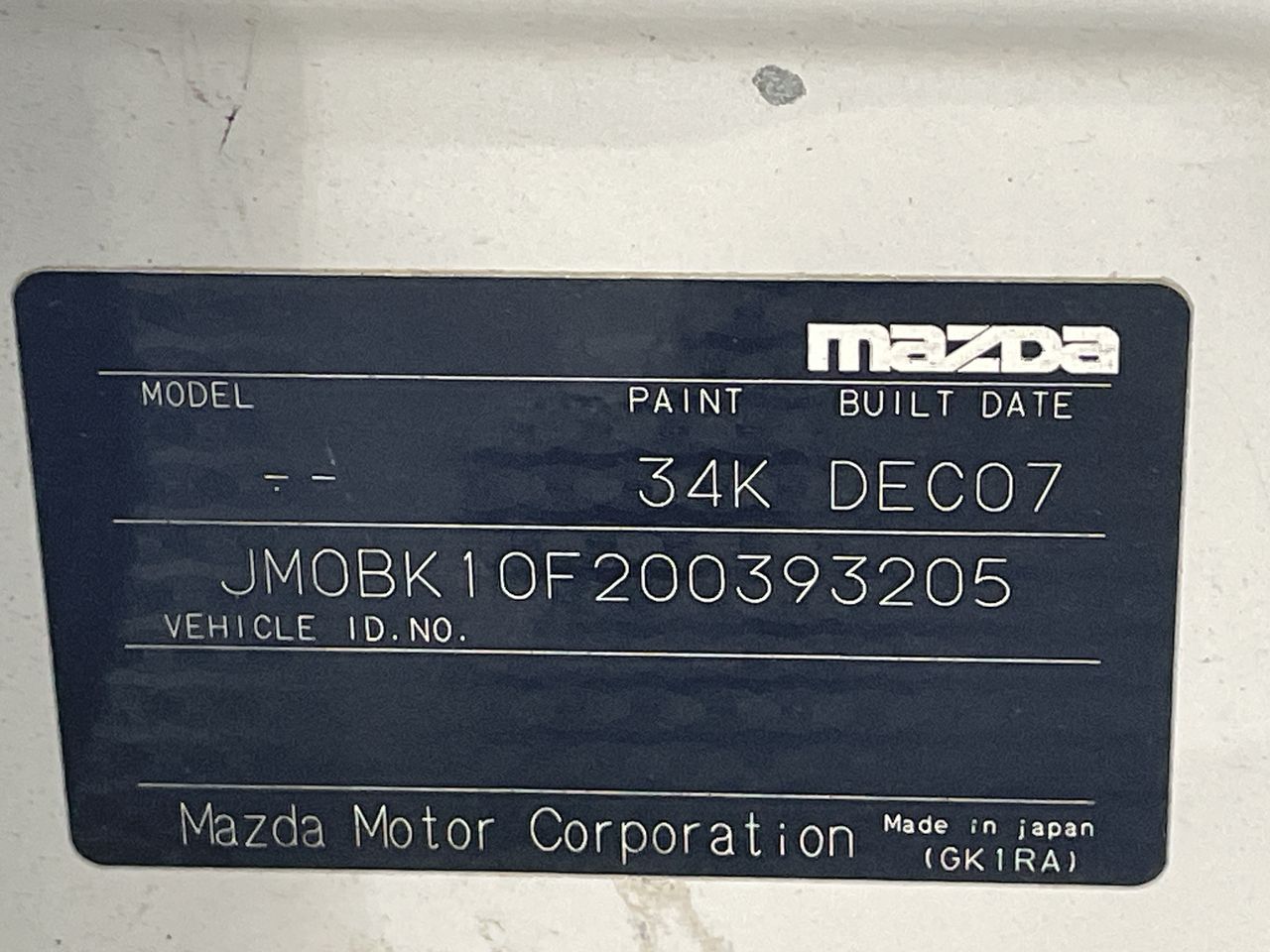 (SN:JM0BK10F200393205) (121121-1)