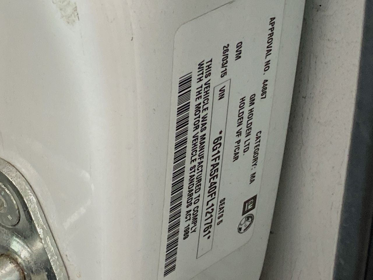 • VIN: 6G1FA5E40FL121761