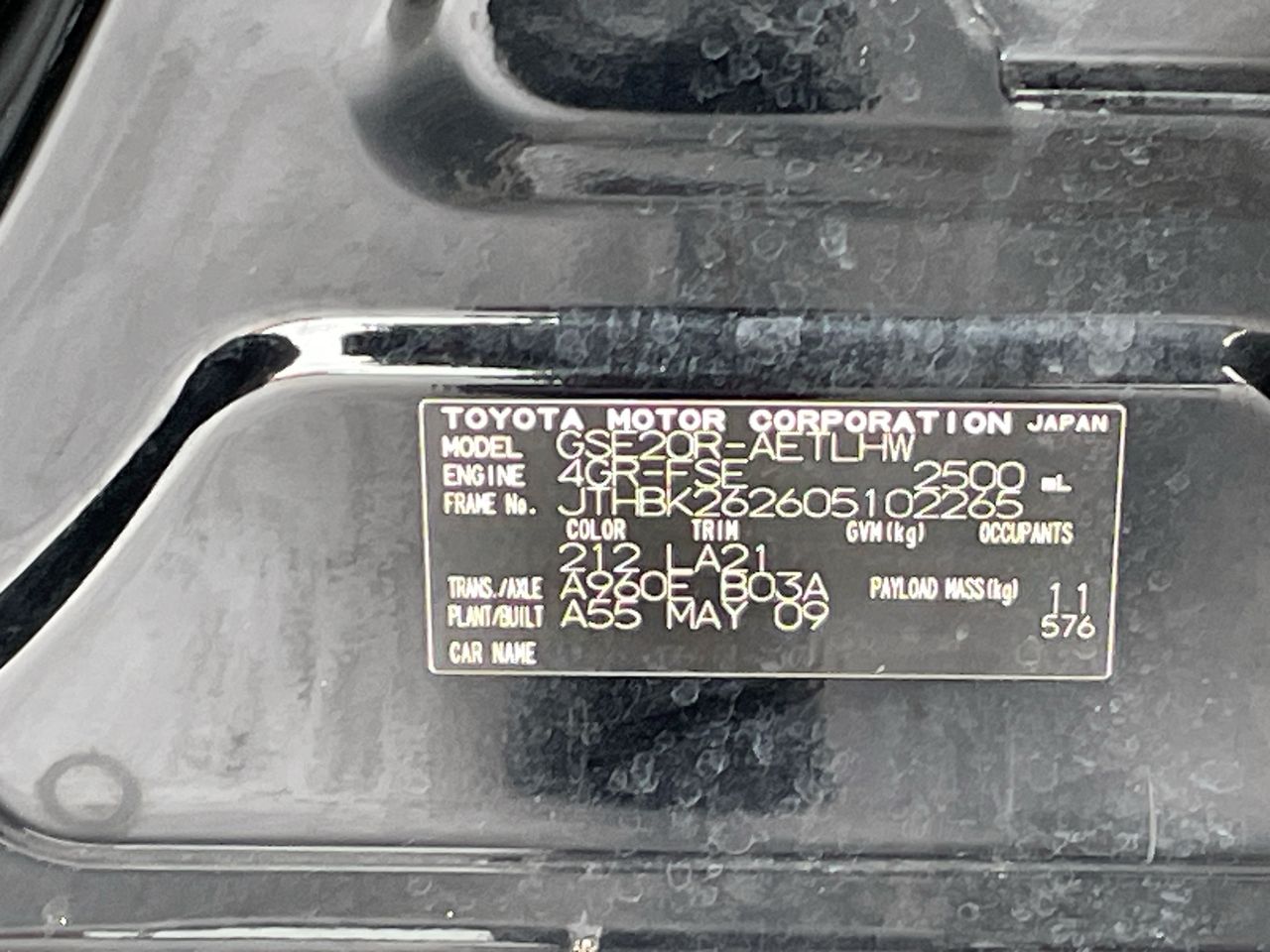 • VIN: JTHBK262605102265