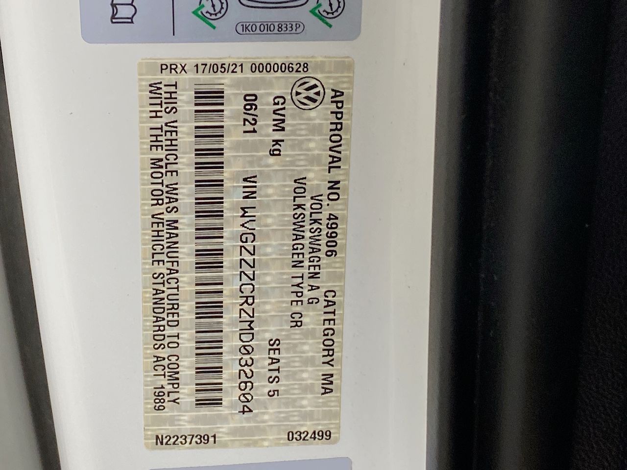 (SN:WVGZZZCRZMD032604) (98175-55)