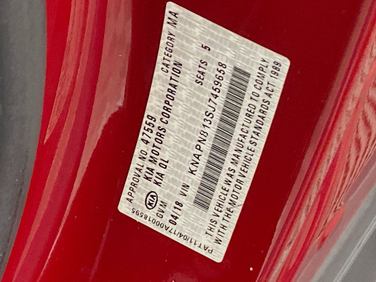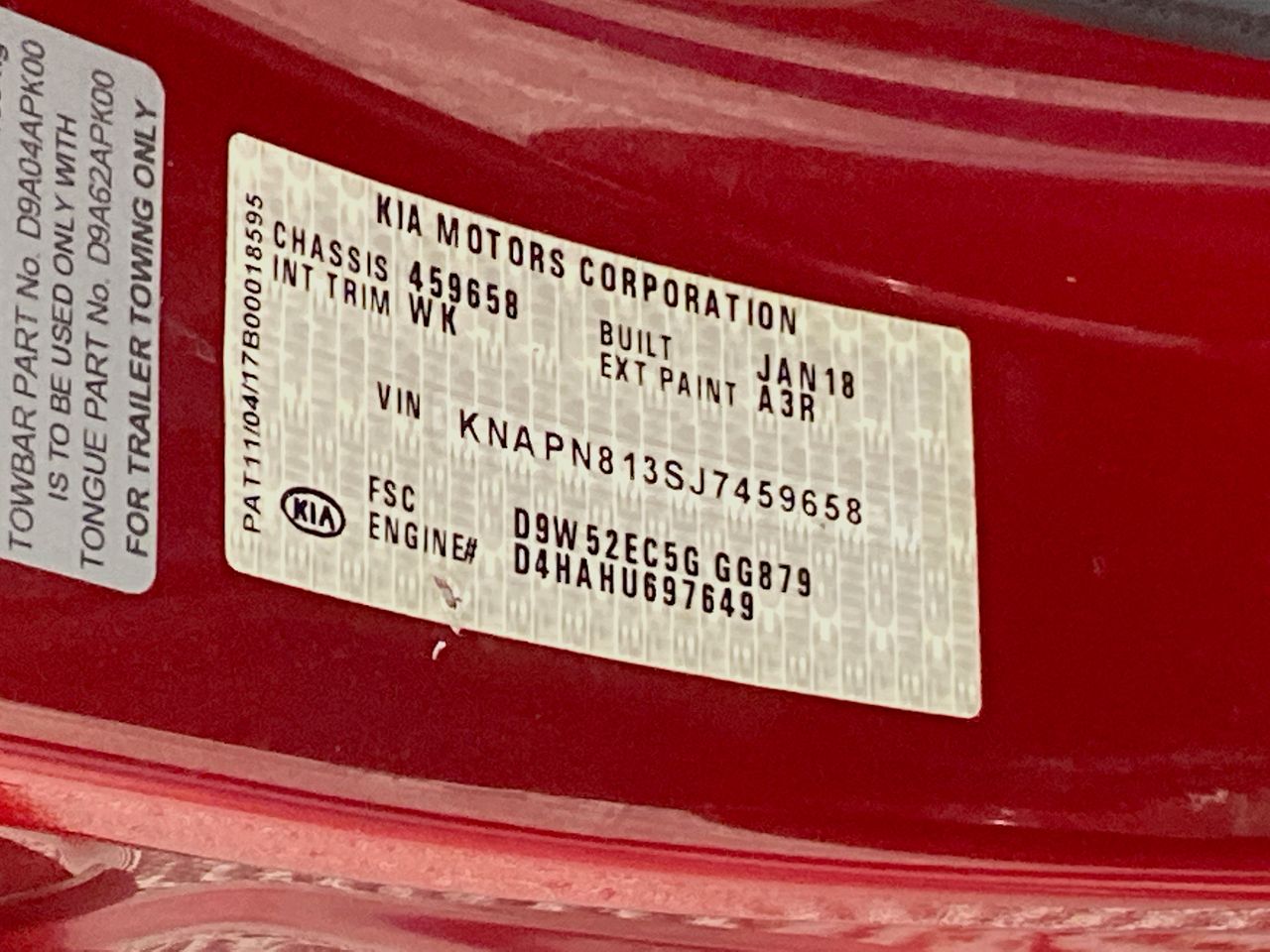 (SN:KNAPN813SJ7459658) (116903-1738)