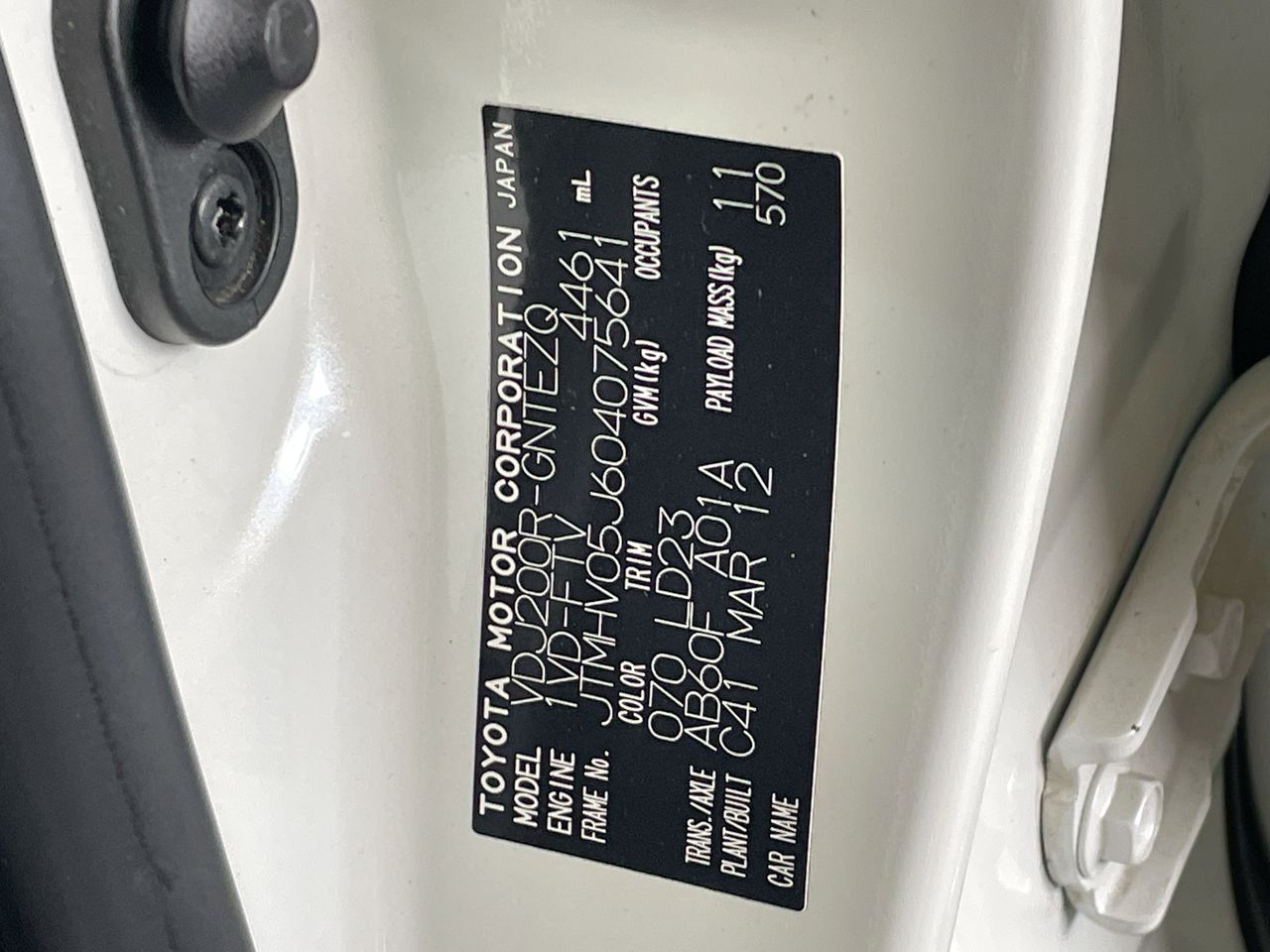 (SN:JTMHV05J604075641) (121071-8)