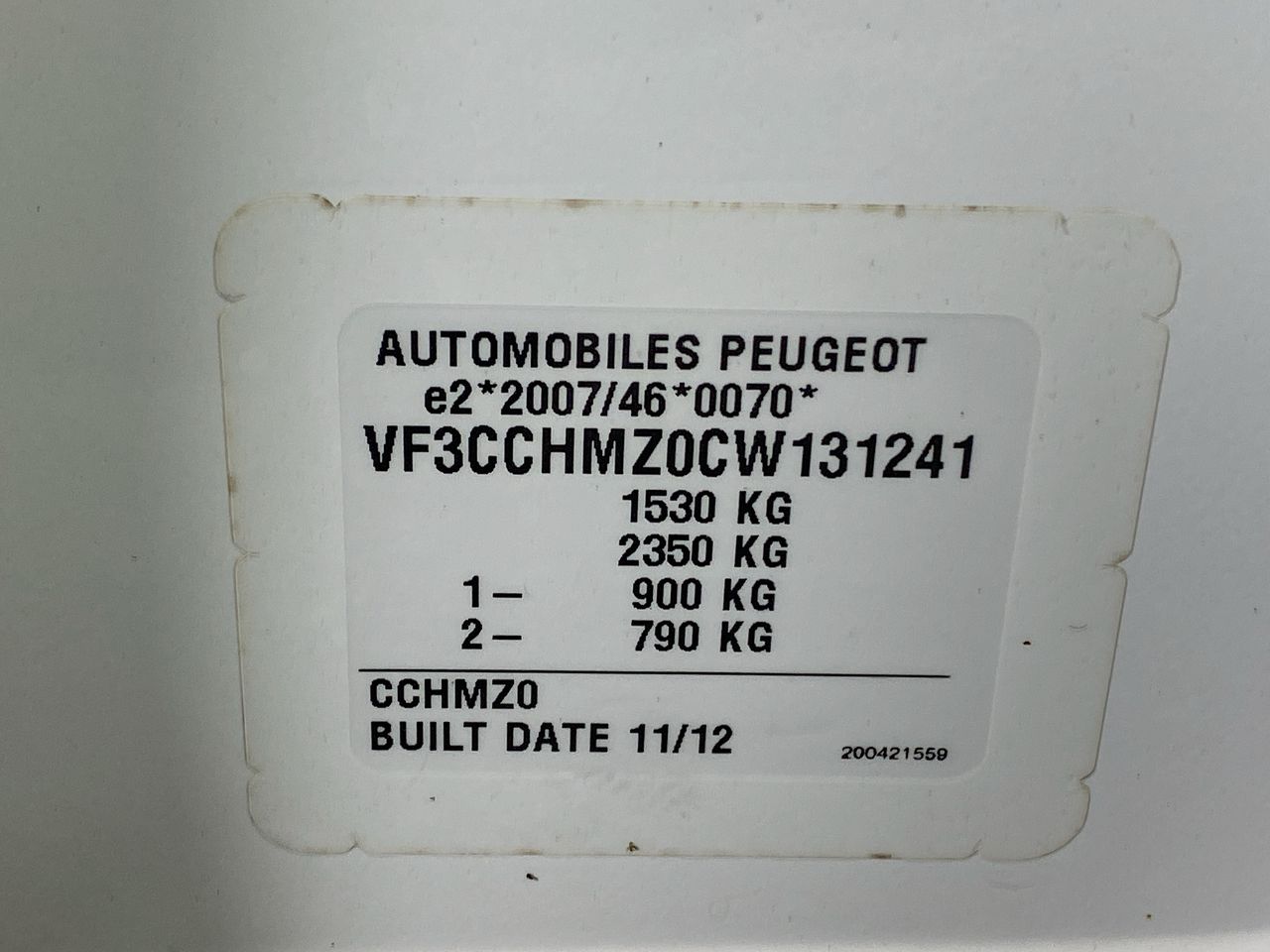 (SN:VF3CCHMZ0CW131241) (115103-17)