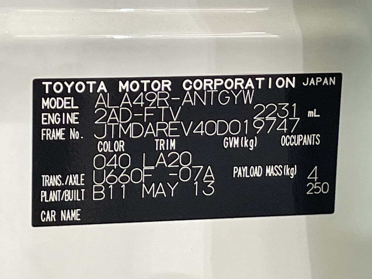 (SN:JTMDAREV40D019747) (115230-1489)