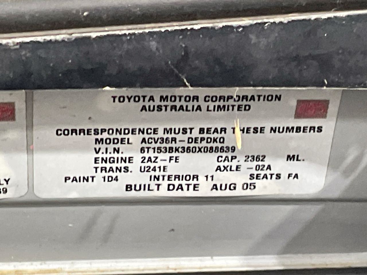 | Part of Sale | 2005 Toyota Camry Altise ACV36R Automatic Sedan | ||||||||||||||