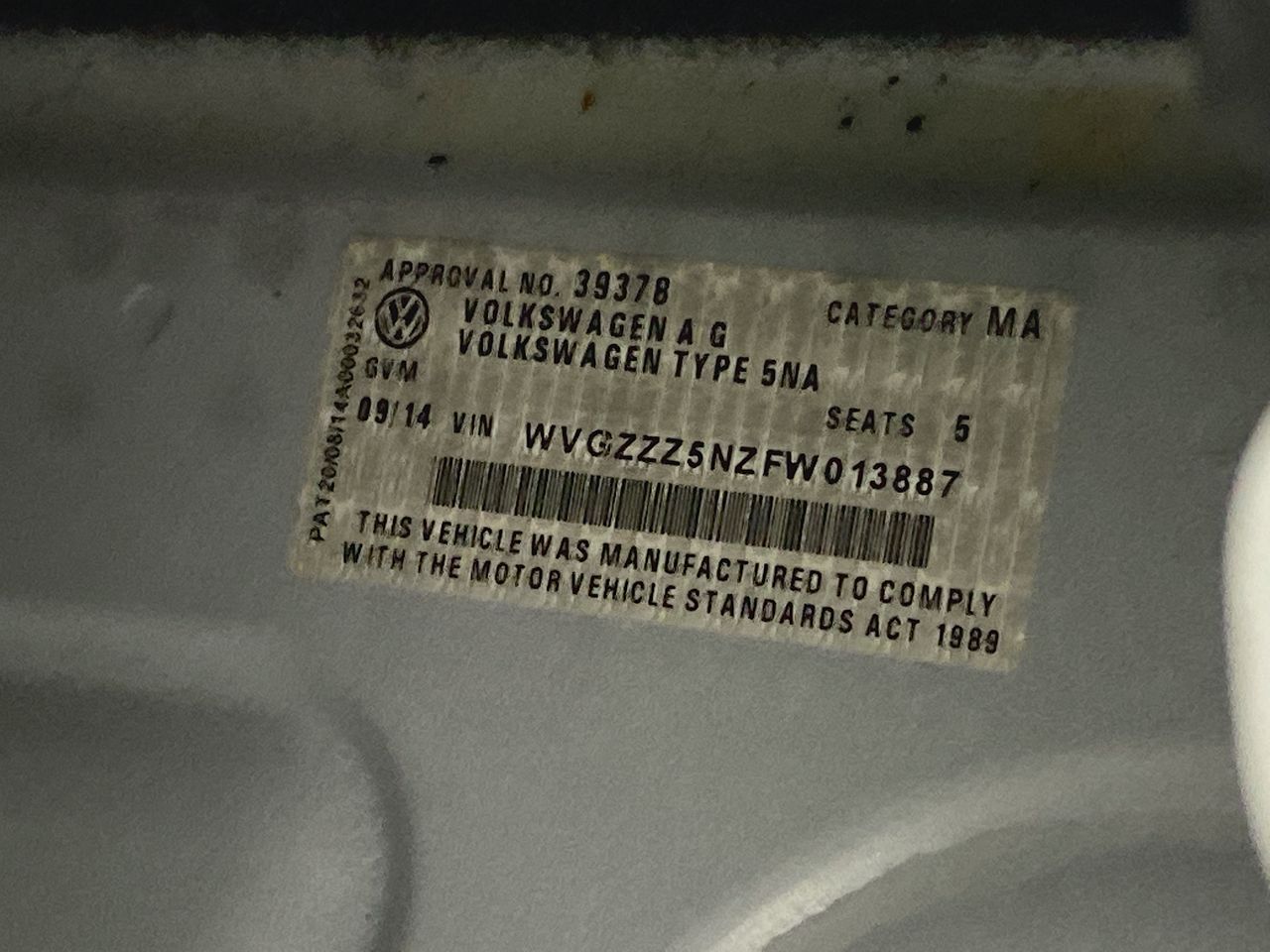 (SN:WVGZZZ5NZFW013887) (117946-129)