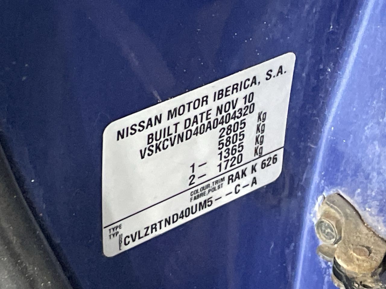 (SN:VSKCVND40A0404320) (121138-8)