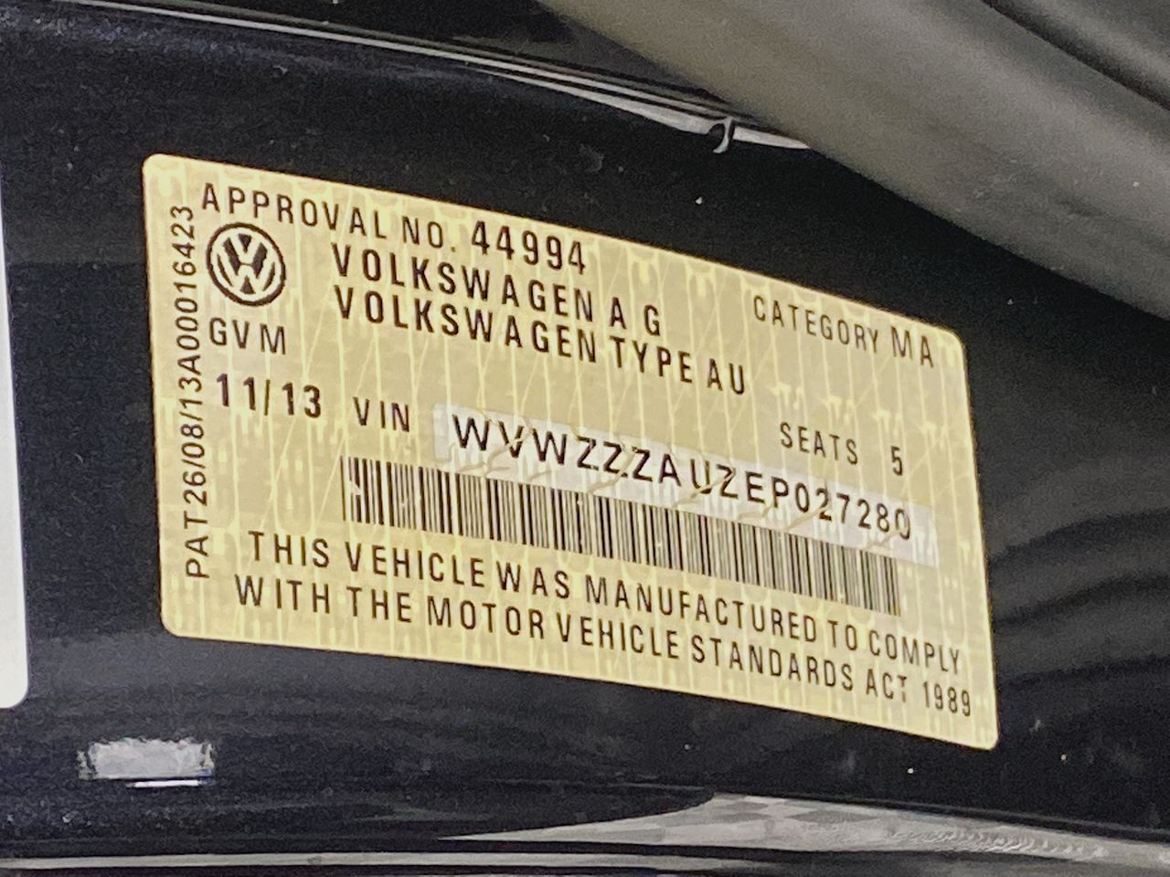 • VIN: WVWZZZAUZEP027280
