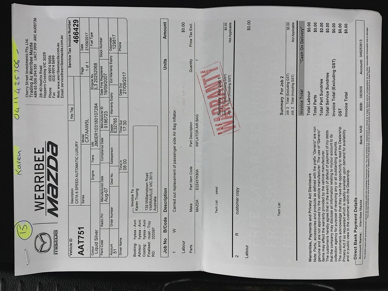 | Part of Sale | 2007 Mazda CX-7 Luxury Automatic Wagon | ||||||||||||||