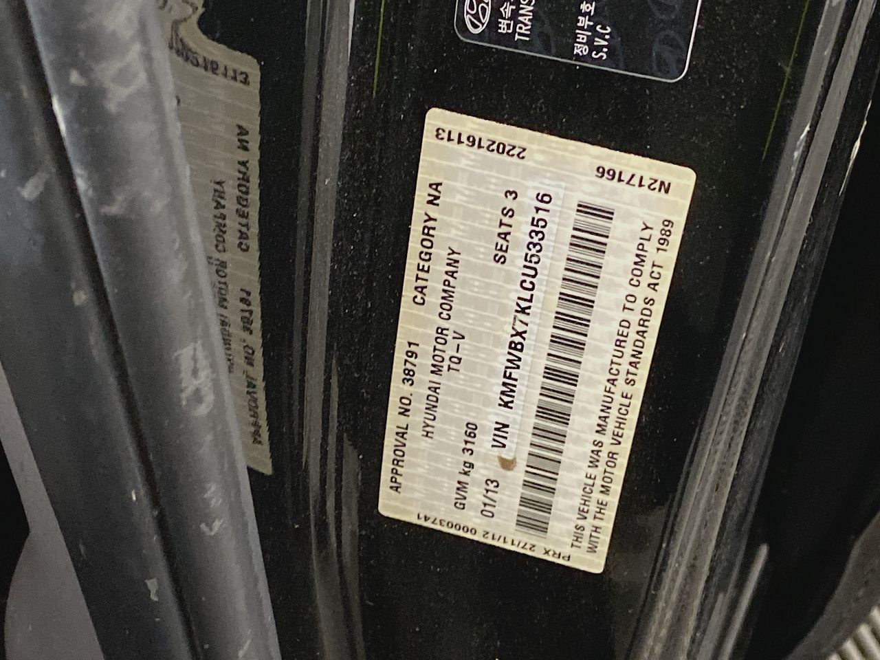 • VIN: KMFWBX7KLCU533516