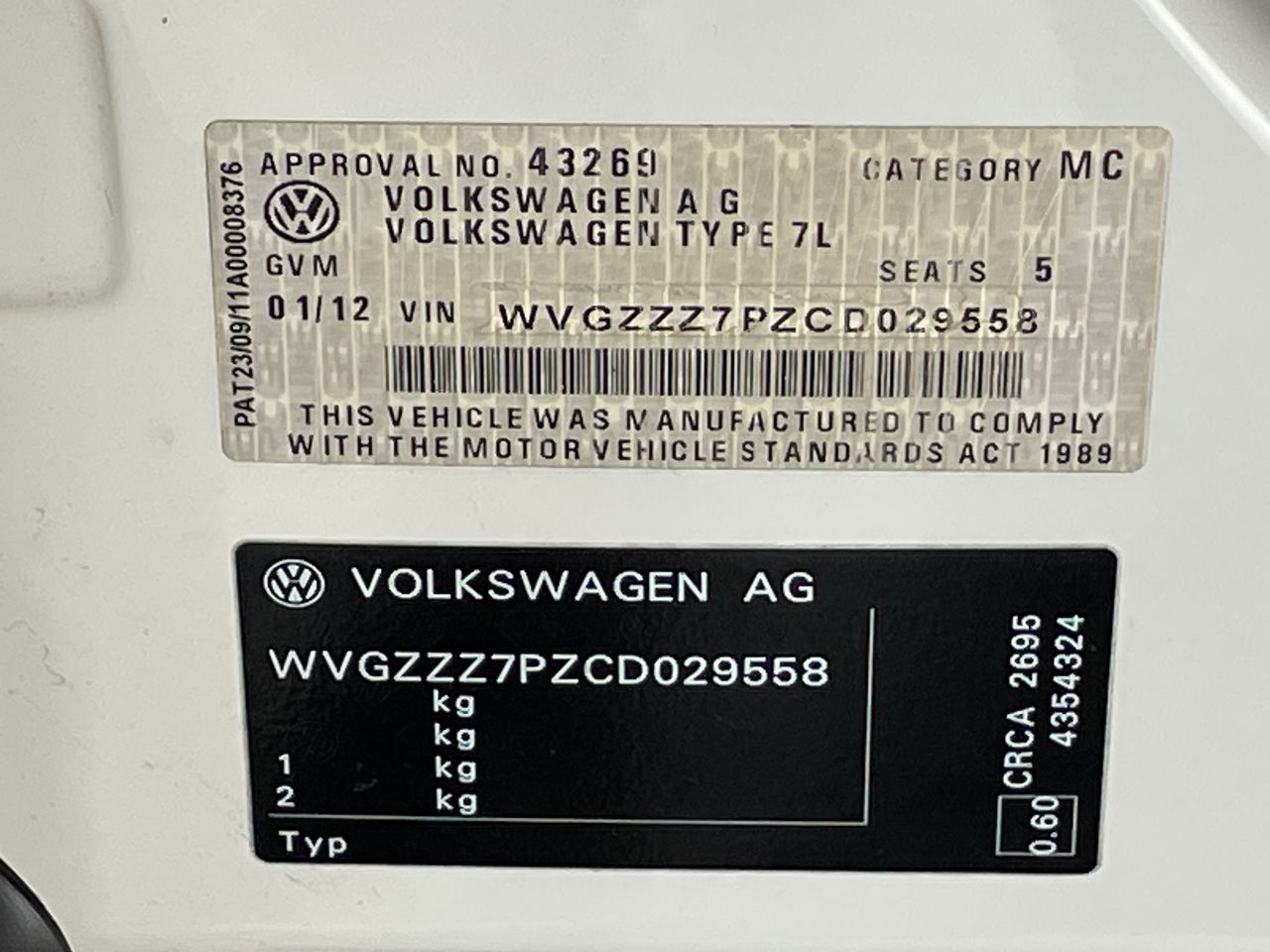 (SN:WVGZZZ7PZCD029558) (95134-325)