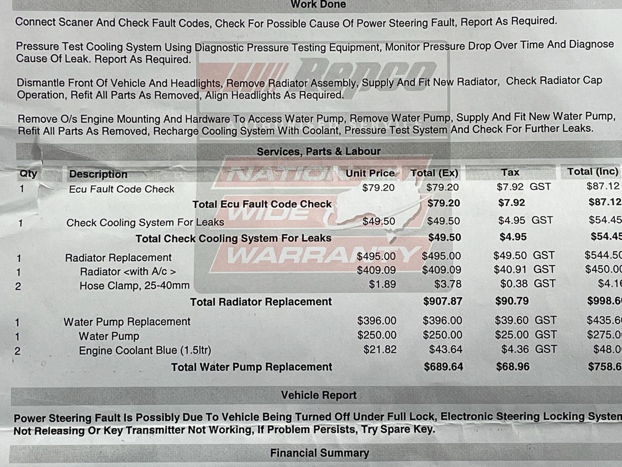 A statutory warranty or obligation to repair may be available. Please see further information for each state and territory.