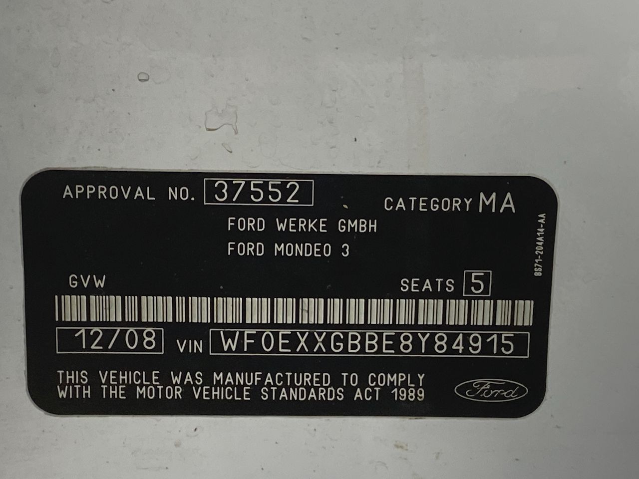Part of Sale 2008 Ford Mondeo XR5 MA Manual Hatchback