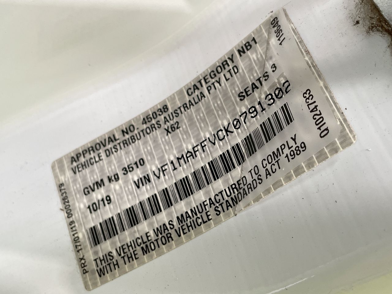 (SN:VF1MAFFVCK0791302) (119561-118)