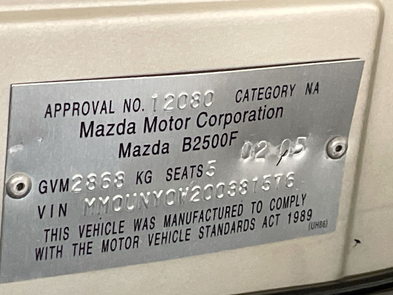 | Part of Sale | 2005 Mazda Bravo SDX T/D DUAL CAB B2500 | ||||||||||||||
