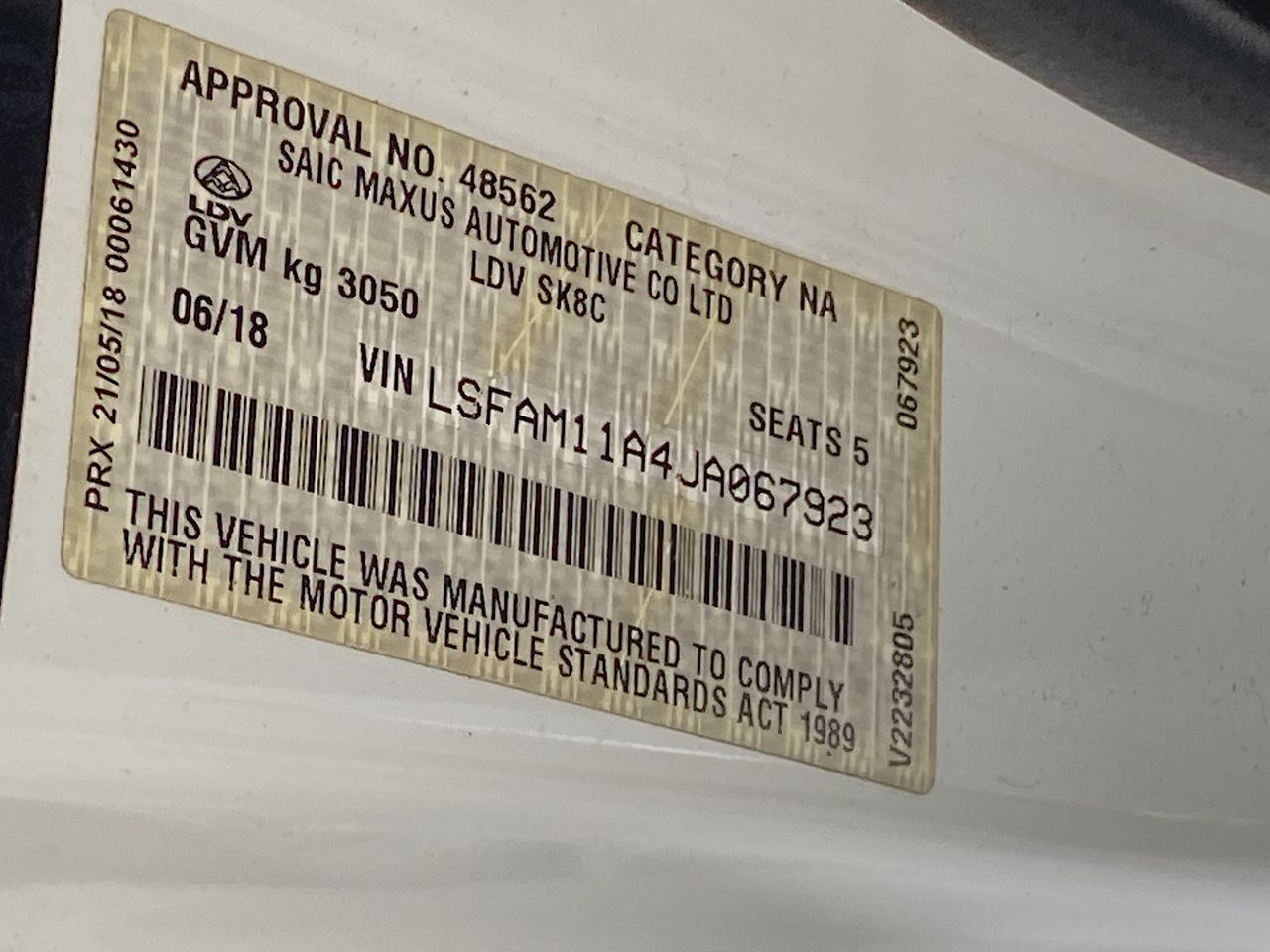 (SN:LSFAM11A4JA067923) (119580-140)