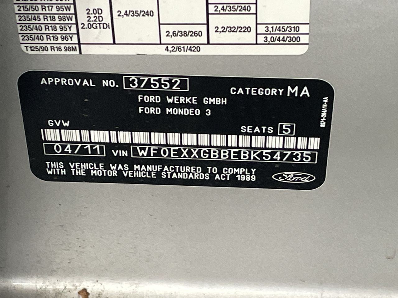 (SN:WF0EXXGBBEBK54735) (108343-299)