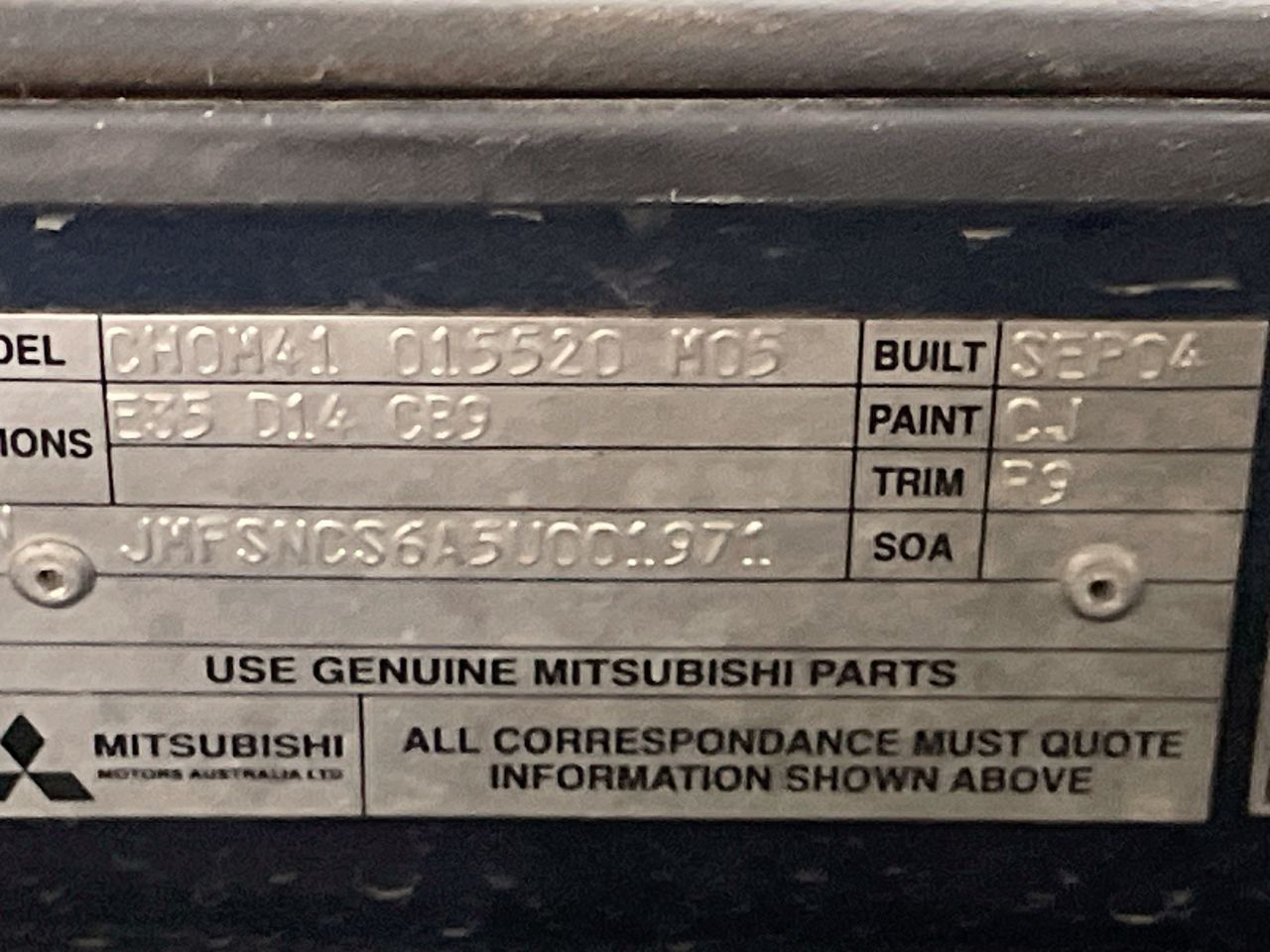 | Part of Sale | Unres 2004 Mitsubishi Lancer ES CH Manual Sedan | ||||||||||||||||