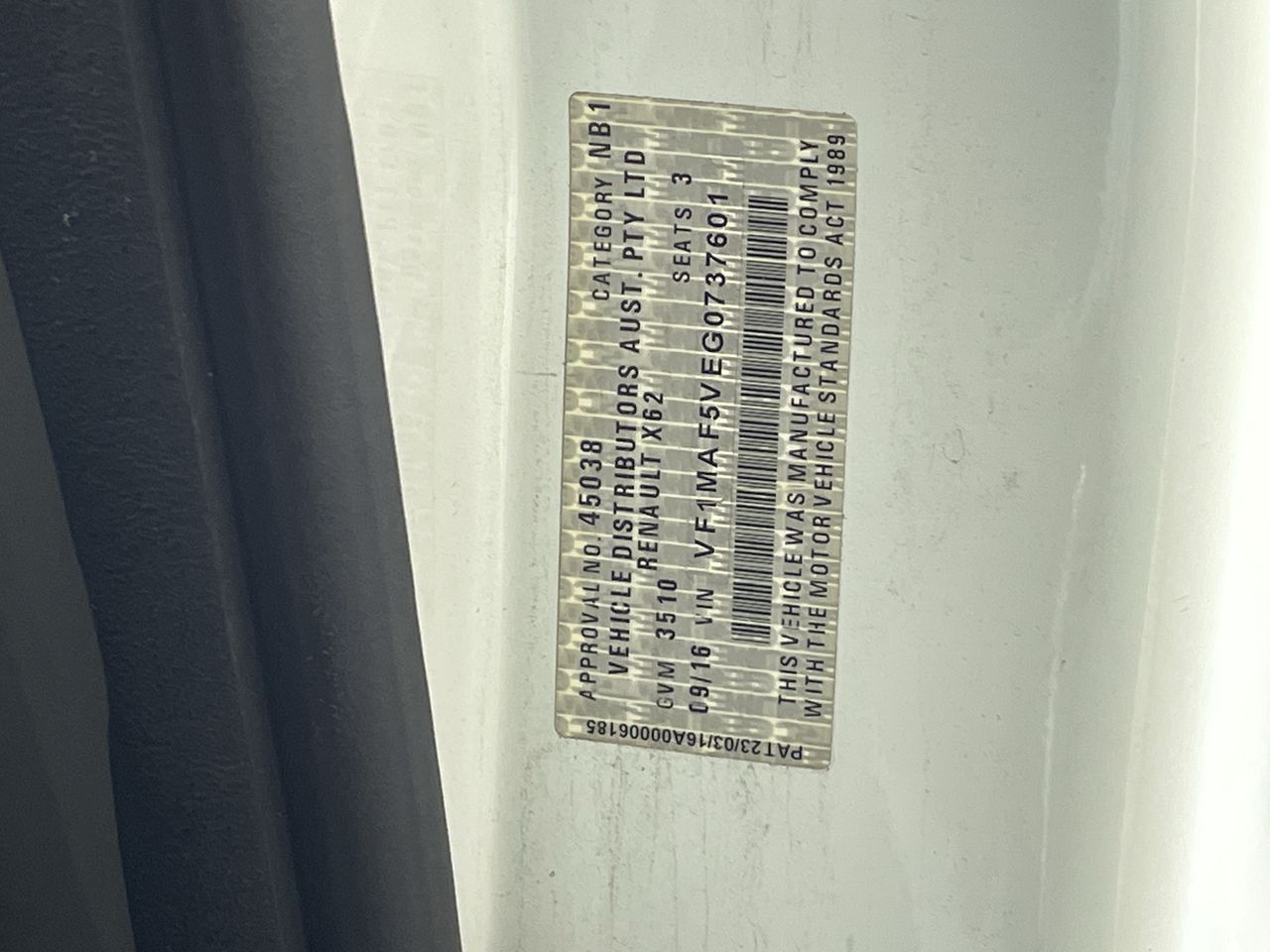 (SN:VF1MAF5VEG0737601) (118256-1784)