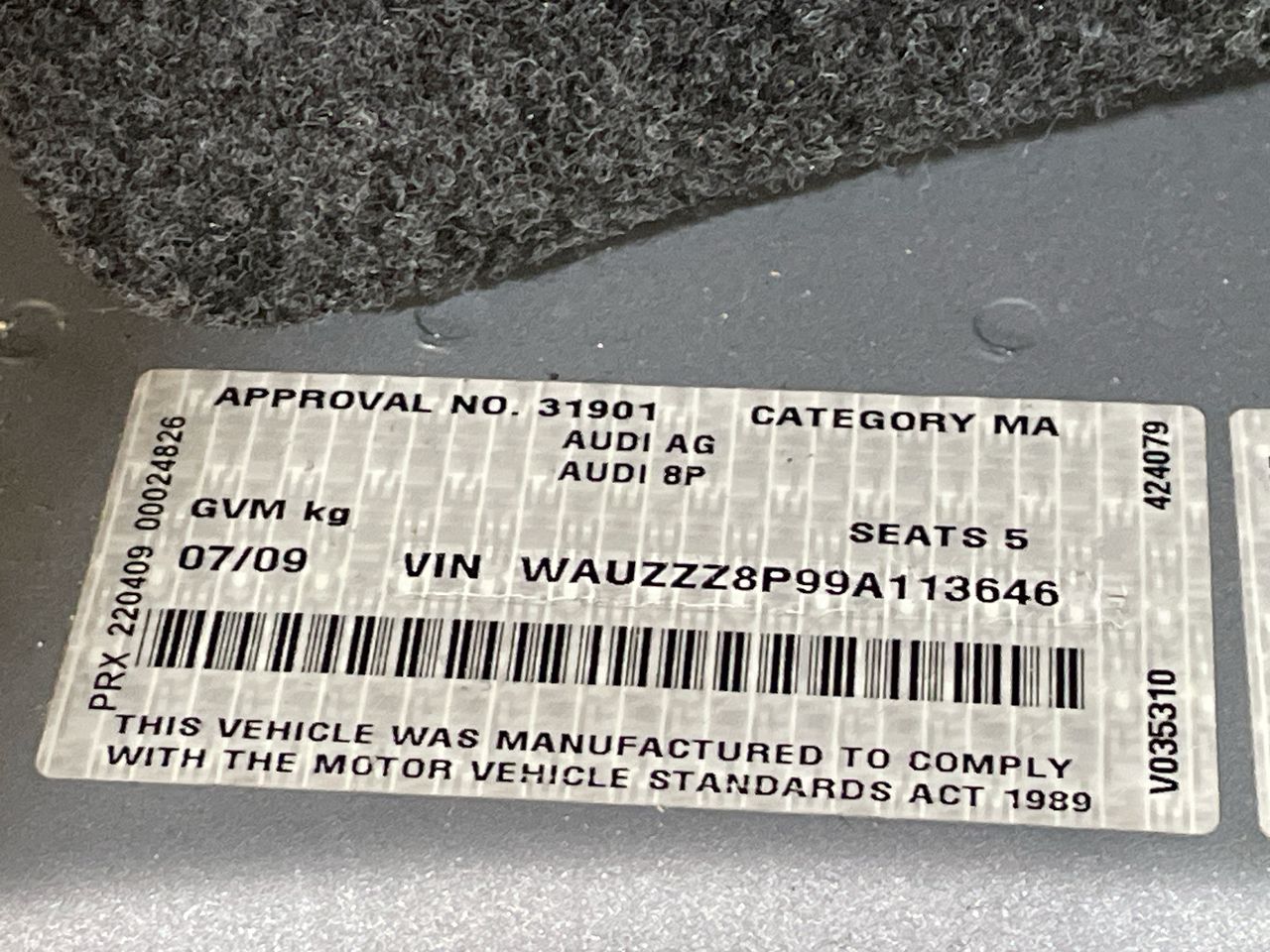 • VIN: WAUZZZ8P99A113646