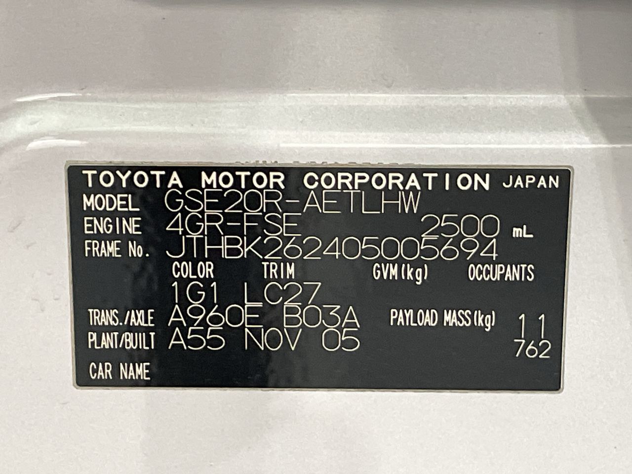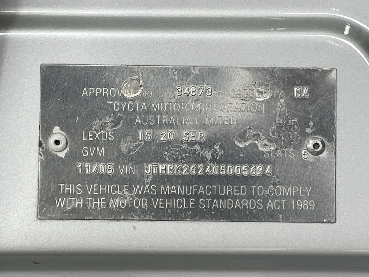| Part of Sale | 2005 Lexus IS IS250 Prestige Automatic Sedan | ||||||||||||||||