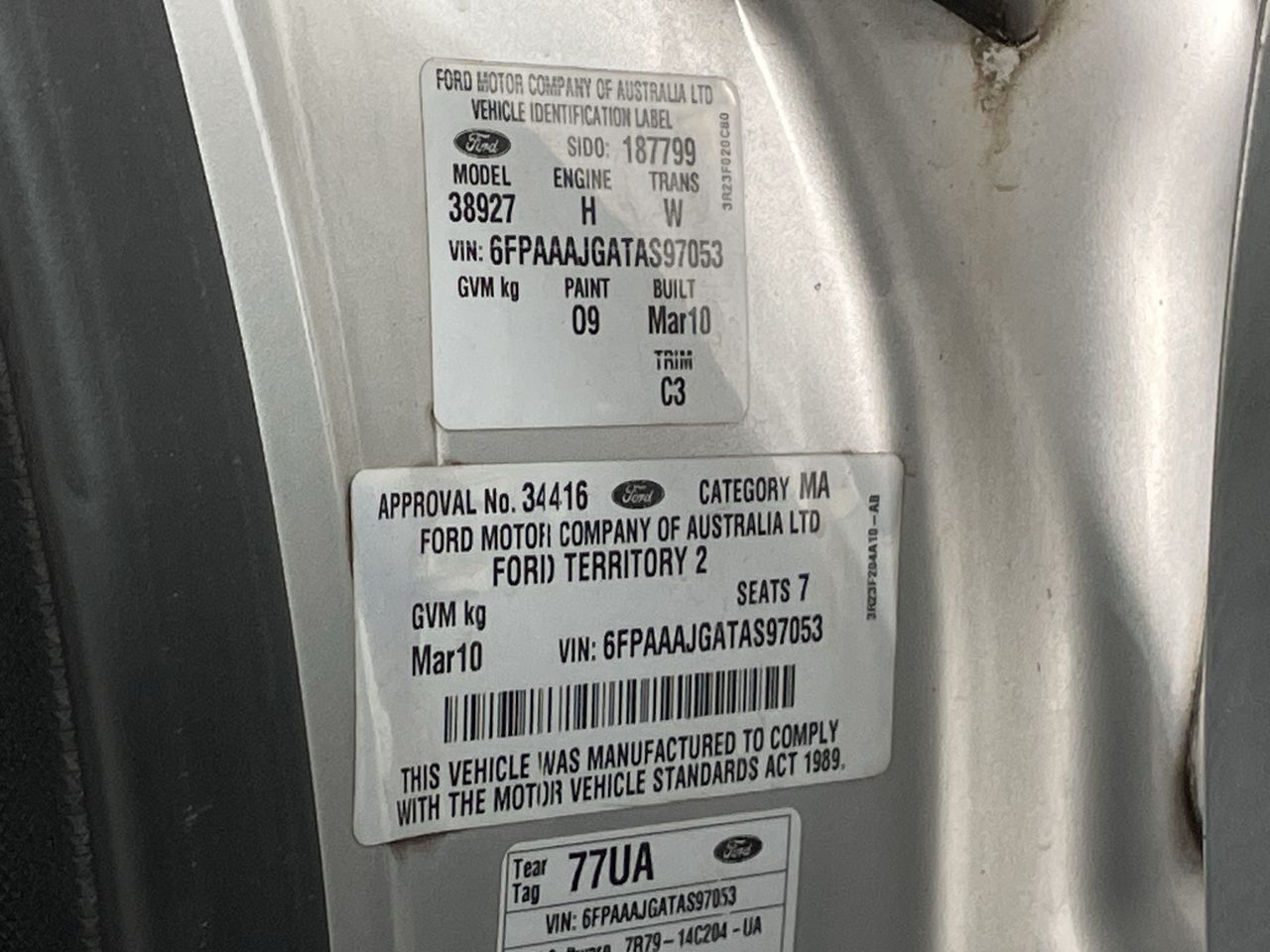 | Part of Sale | 2010 Ford Territory Ghia SY II Automatic 7 Seats Wagon | ||||||||||||||||