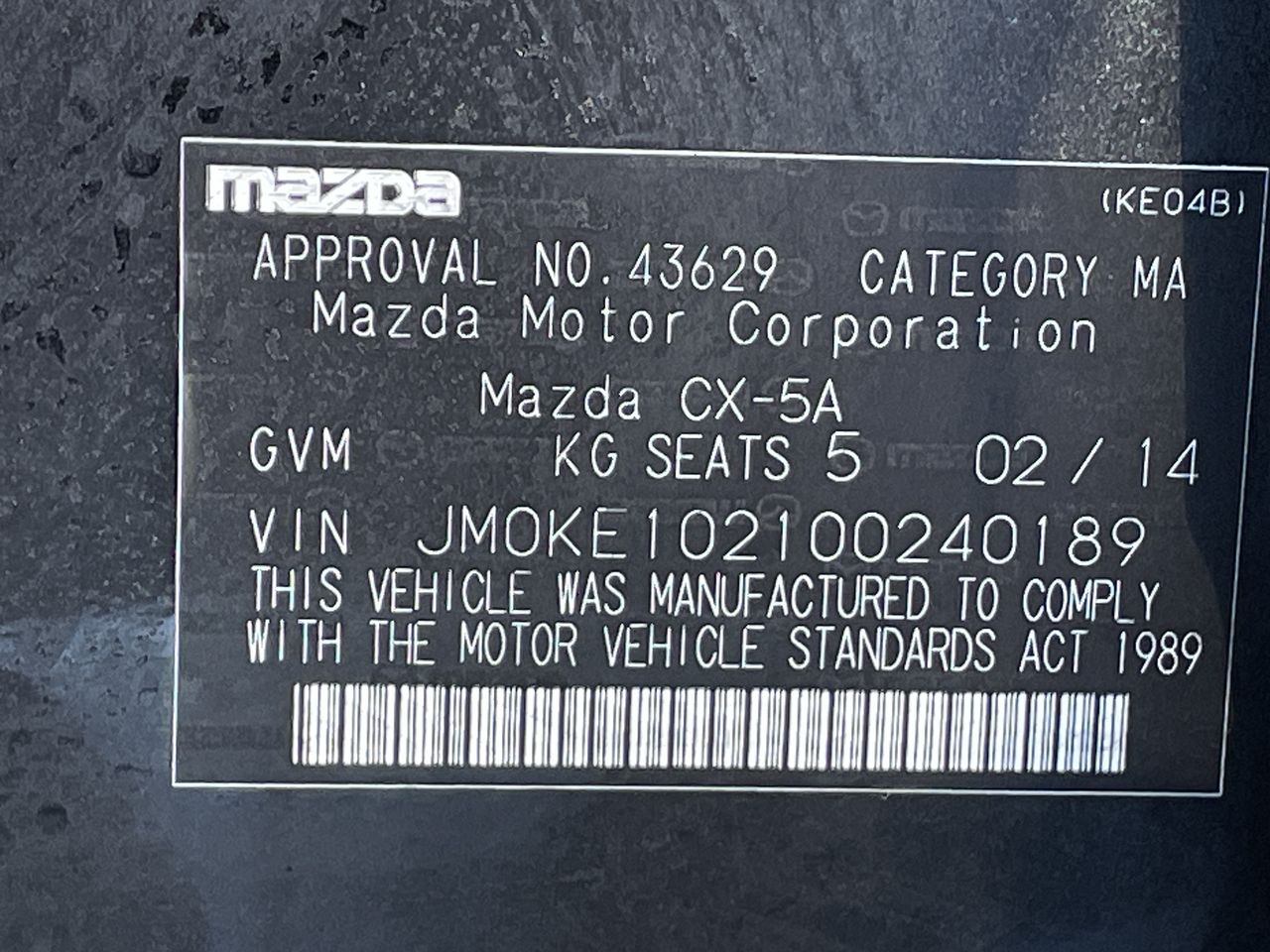 (SN:JM0KE102100240189) (103569-4)