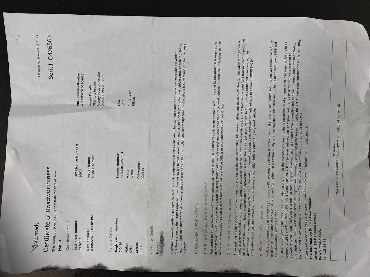 1300 064 978 or email at vicauto@grays.com.au