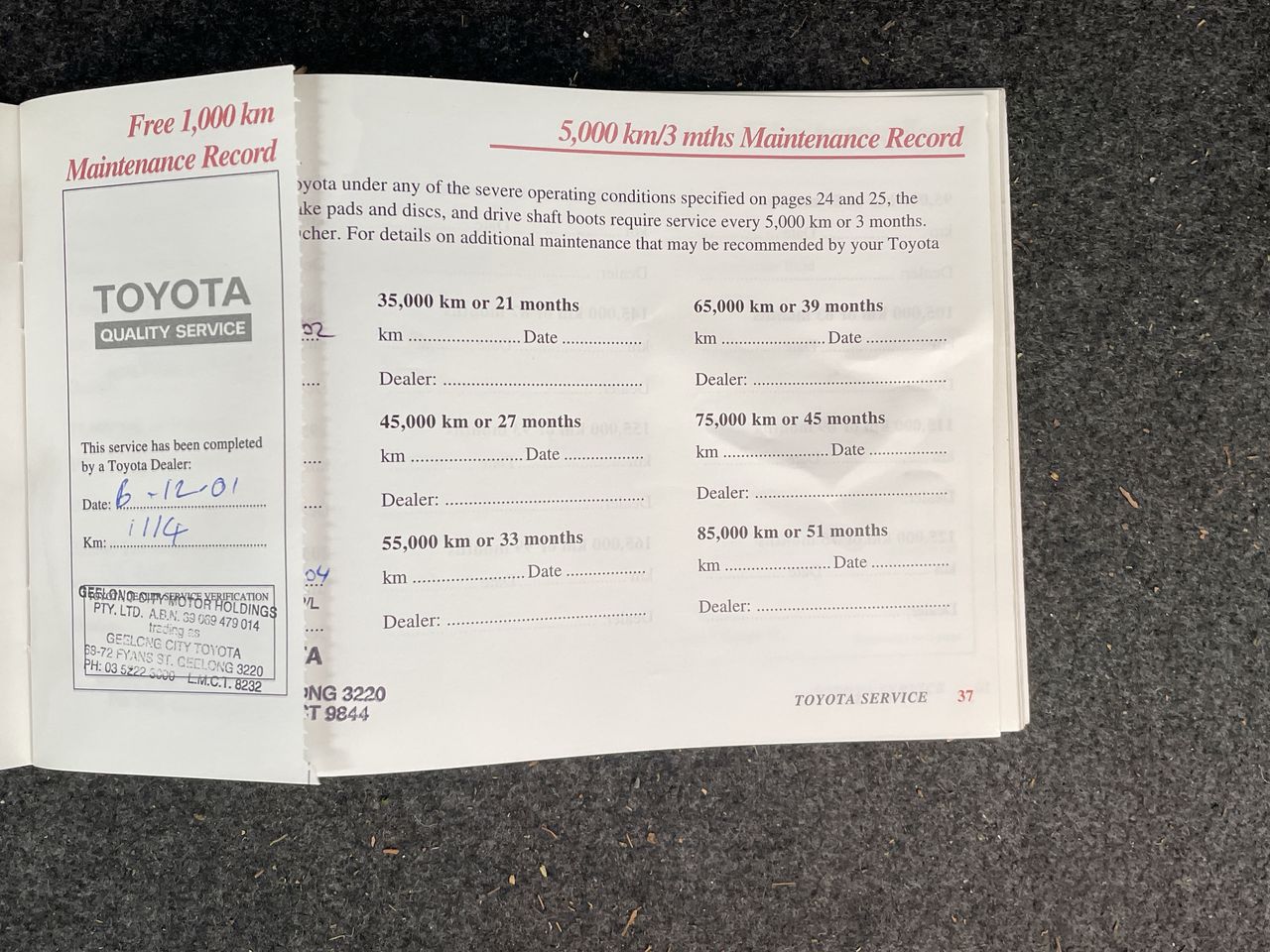 2001 Toyota Corolla Ascent AE112R Manual Sedan