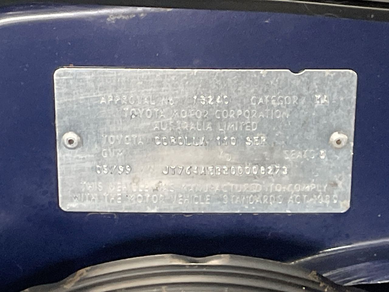 | Part of Sale | 1999 Toyota Corolla Conquest Seca AE112R Automatic Hatchback | ||||||||||||||||