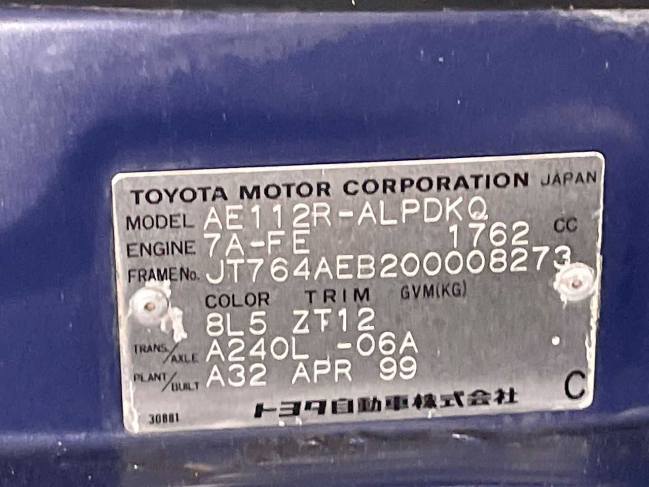 (SN:JT764AEB200008273) (117946-198)