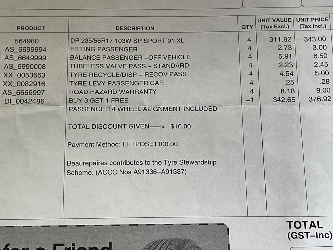 | GST: | Inclusive (see below note) | ||||||||||||||||
