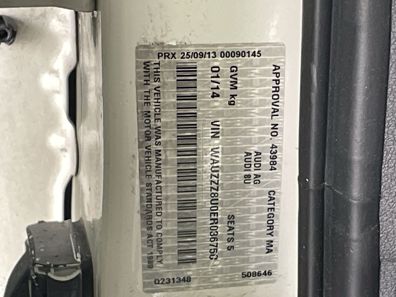 (SN:WAUZZZ8U0ER036750) (116255-13)