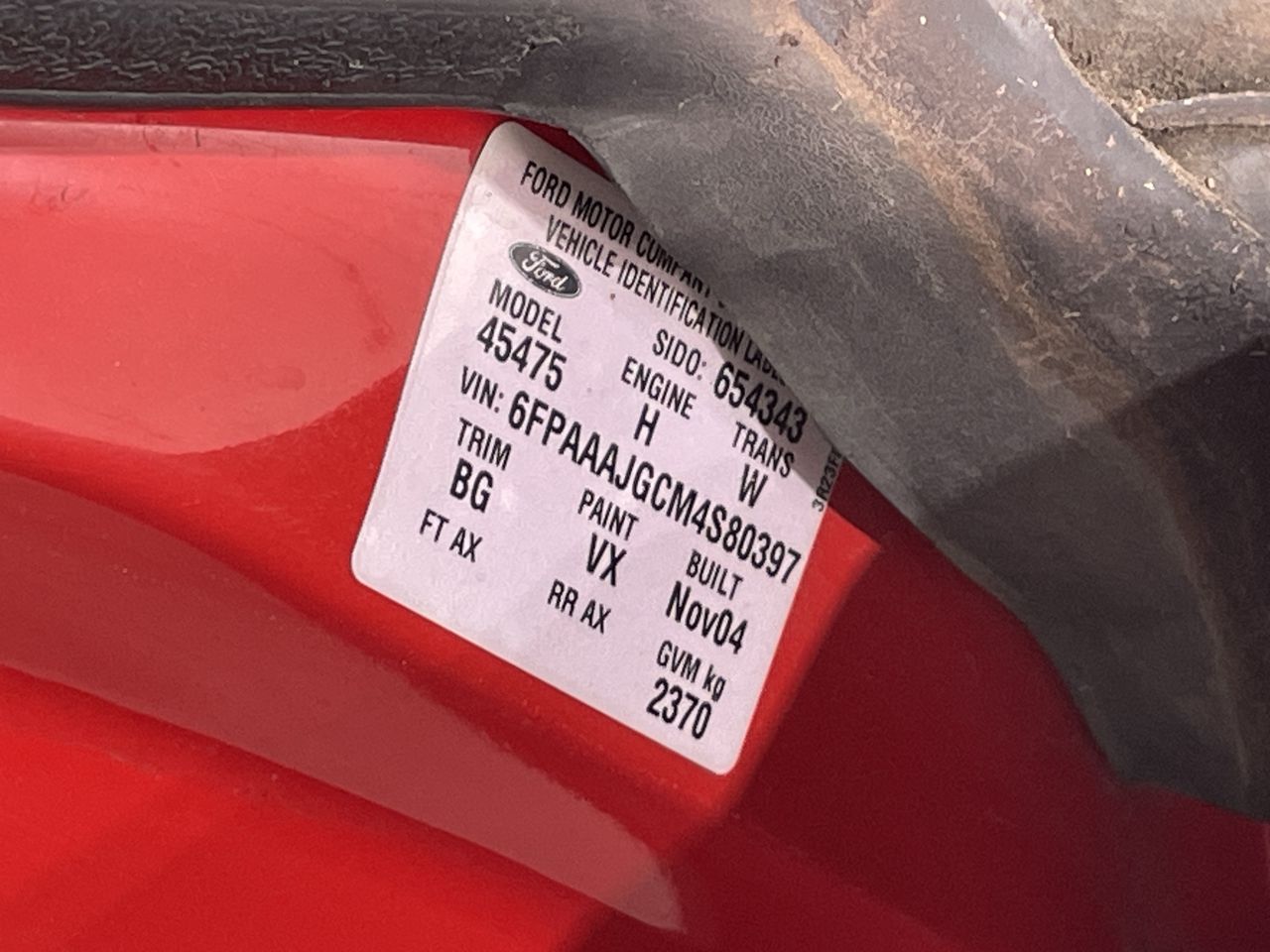 • VIN: 6FPAAAJGCM4S80397