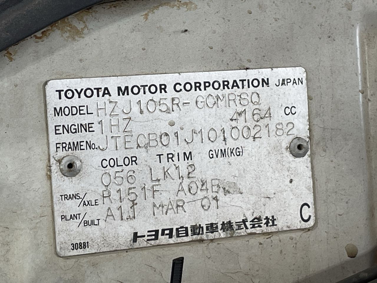 | Part of Sale | 2001 Toyota Landcruiser (4x4) HZJ105R Manual 8 Seats Wagon | ||||||||||||||||